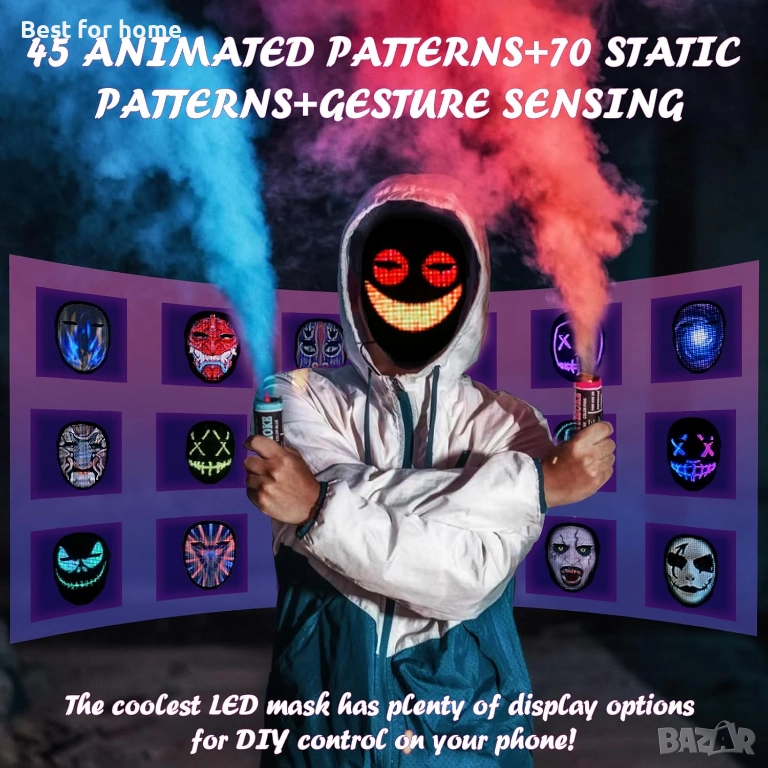 Поддържа разпознаване на жестове, можете да променяте различни модели/картини, като махнете с ръка върху маската.