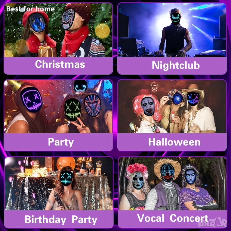 Блестящата маска може да се използва по всякакъв повод, като партита, рейв партита, дискотеки, клубове, рождени дни, фестивали и събития.