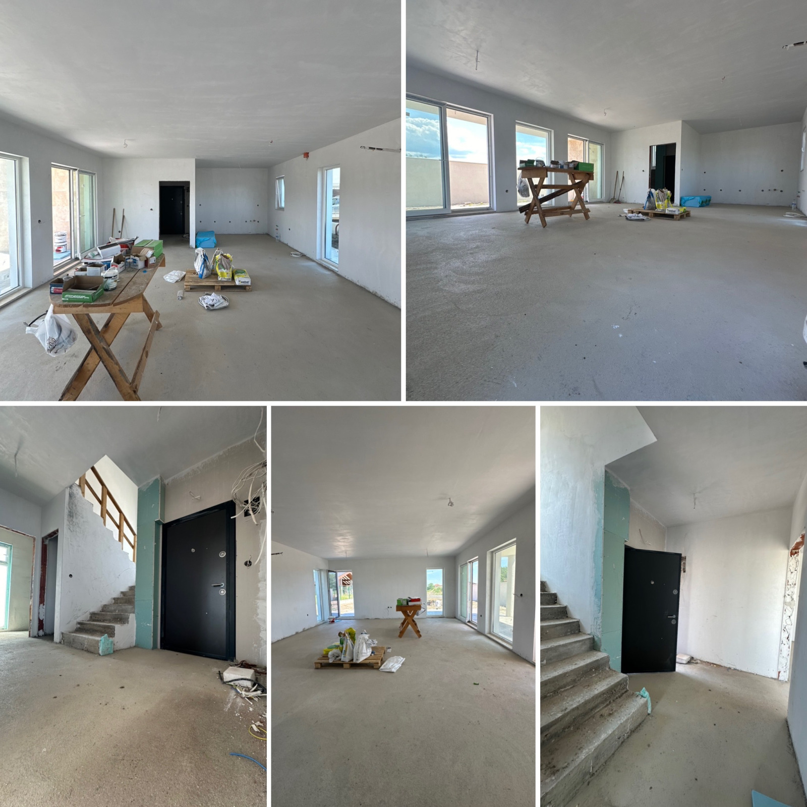 Къщата е с РЗП от 350 кв.м и двор от 530 кв.м с АКТ 16, издадена на шпакловка и замазка с изградени ВиК, ел. инсталация, немска PVC дограма Trocal фулирана от външната страна, с троен стъклопакет ( 4 сезона + Volkswagen механизъм), входна блиндирана врата, изградена вертикална планировка, поставена ажурна ограда и плътна ограда от южната страна на къщата. Двор с капково напояване и озеленяване.
