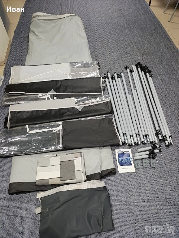 В наличност всички размери форселти, за каравани, кемпери, бусове и ванове. Сафари рум за кемпери. Чисто нови и слабо употребявани. Анекси и инер тенти за форселти. Тенти. Самонадуваеми къмпинг матраци. Мотомувъри за каравани. Покривала за каравани и кемпери. Дишащи килими за форселти и палатки. Къмпинг столове. Шезлонги. Кабели и адаптори за ел. захранване. Водни помпи. Контейнери за чиста и отпадна вода. Къмпинг аксесоари.