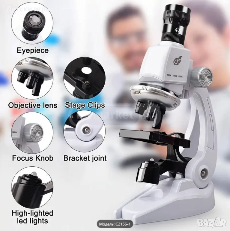 Комплект микроскоп LED 100X 400X 1200X