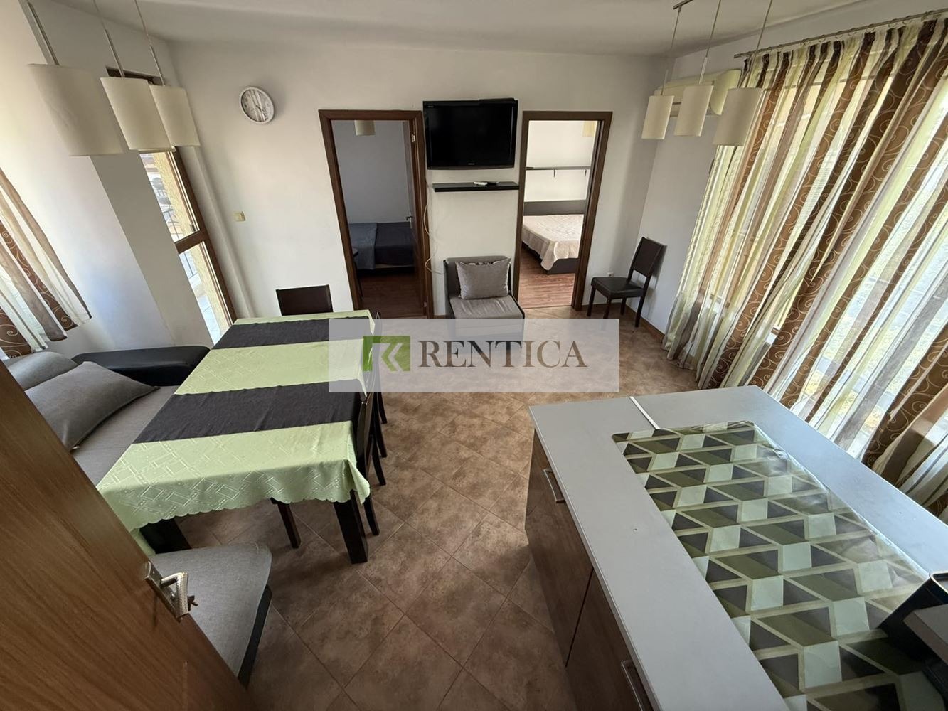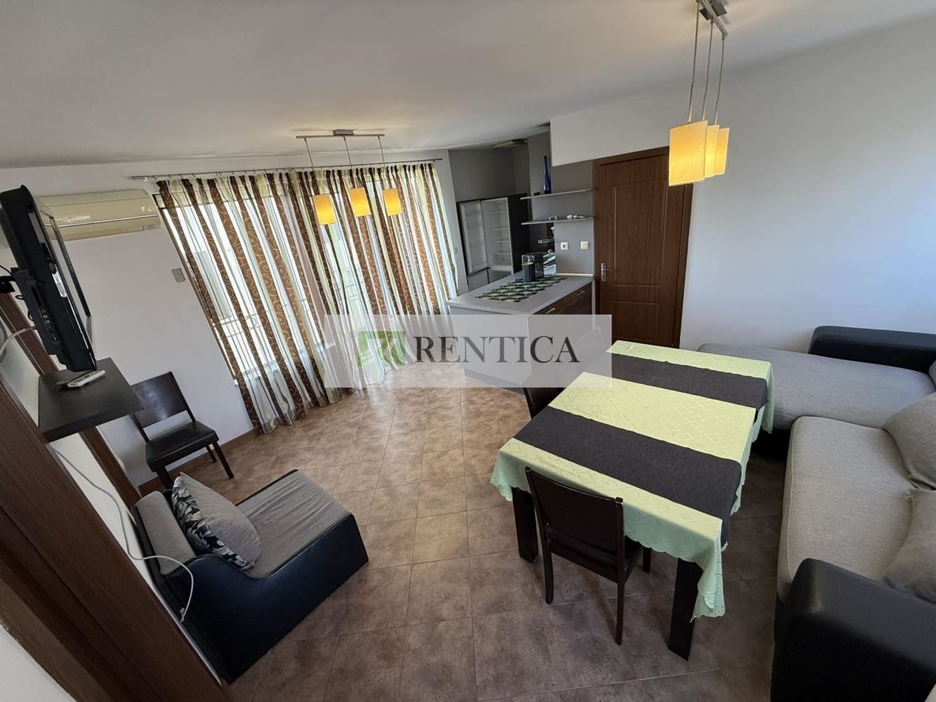ОФЕРТА 8161 ✅Rentica.bg предлага под наем, ТРИСТАЕН, обзаведен апартамент, в близост до Икономически Университет, Червения площад, пазар Чаталджа. Перфектна локацоя, в близост до Морската градина, спирки на градския транспорт, супермаркети, заведения. Състои се от дневен тракт с мека мебел в едно с кухненски кът с всички необходими уреди, две спални и санитарен възел, тераса. Отопление и охлаждане с климатик. Отдава се дългосрочно.