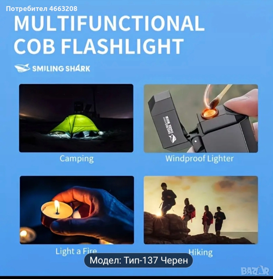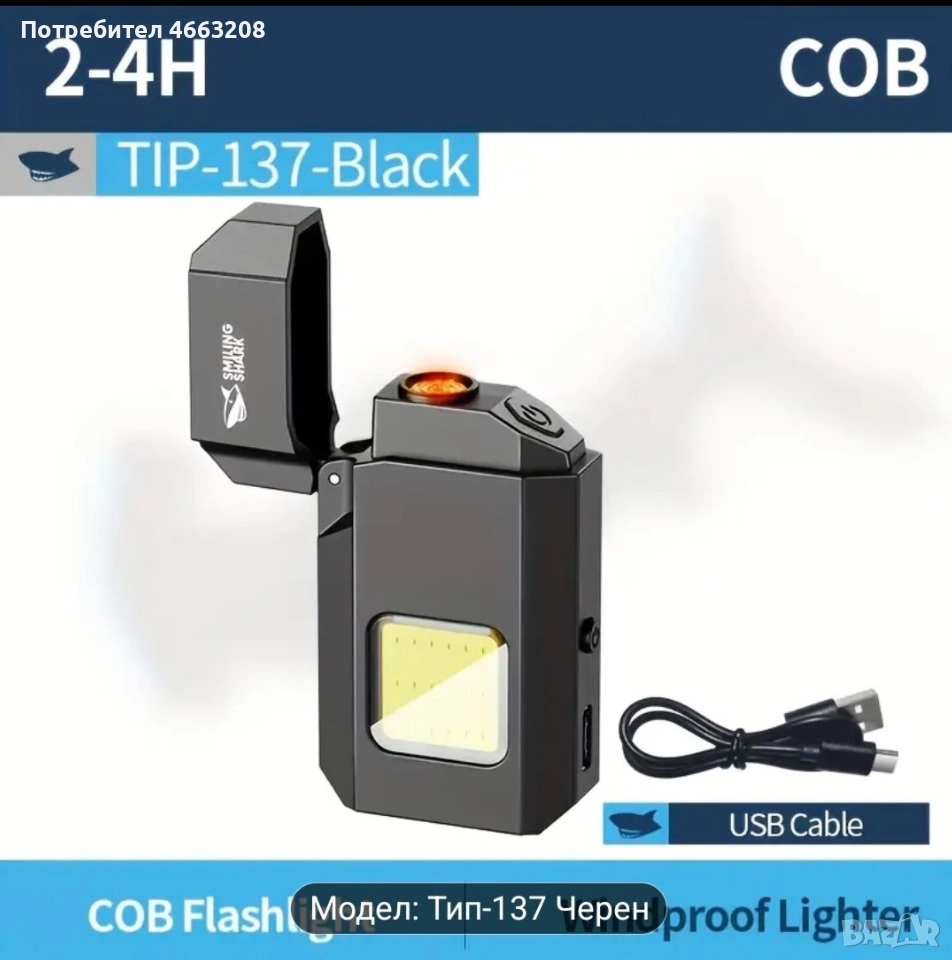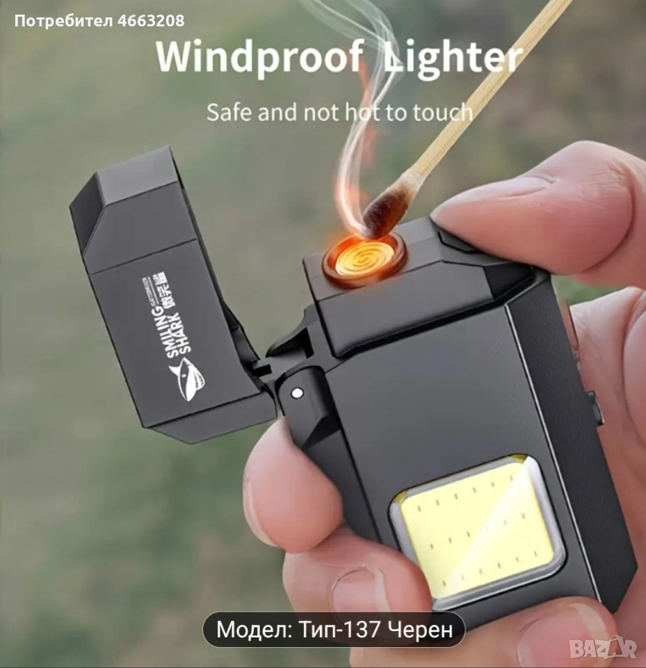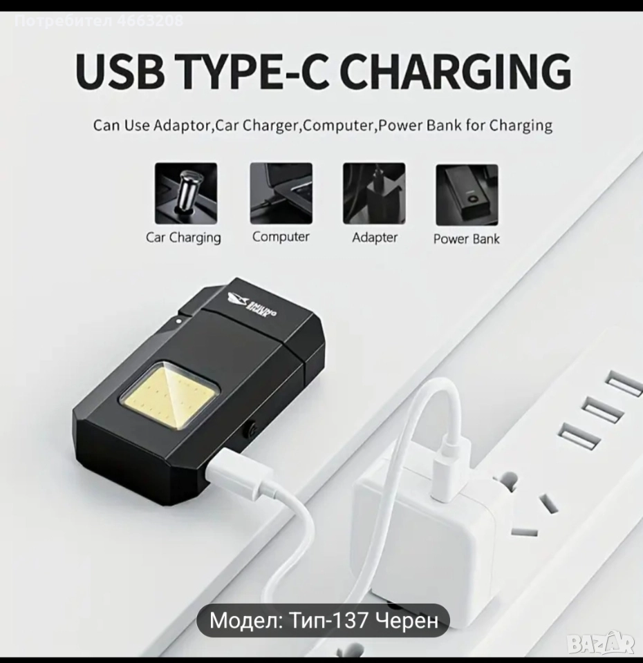 2-в-1 Led-Фенерче & Ветроустойчива Запалка USB Type-c презареждаема батерия.