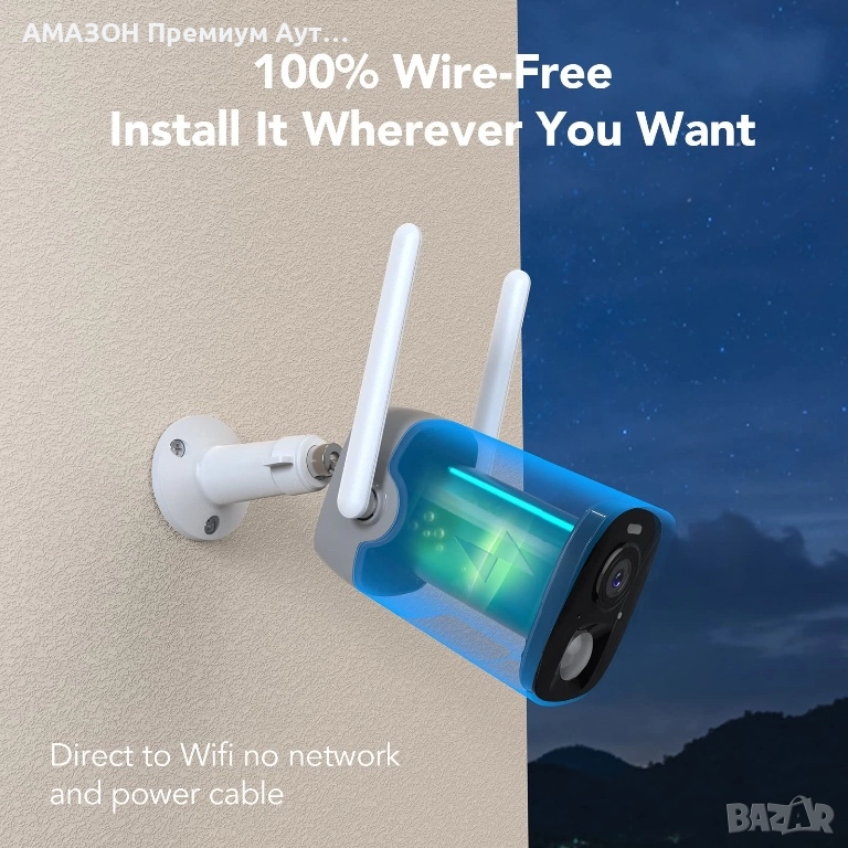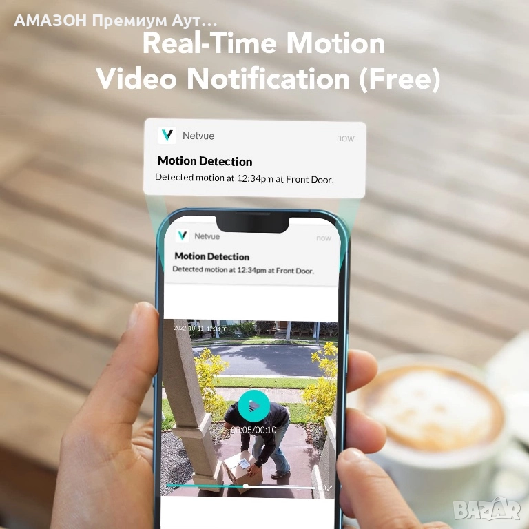 NETVUE Безжична външна WiFi CCTV охранителна батерийна камера/цветно нощно виждане/2-посочно аудио