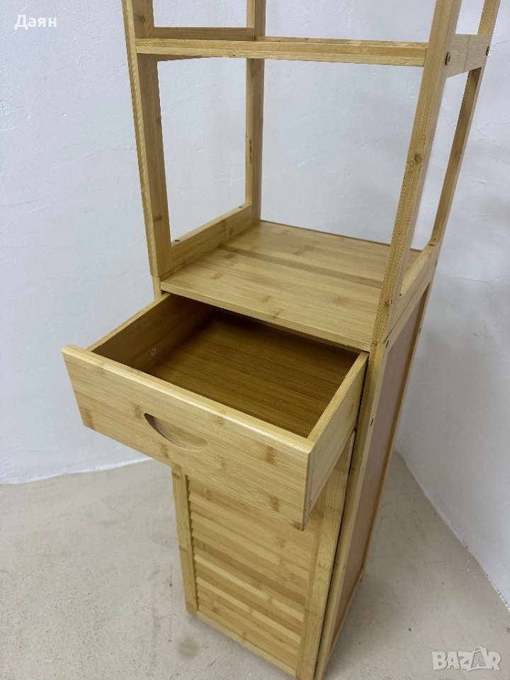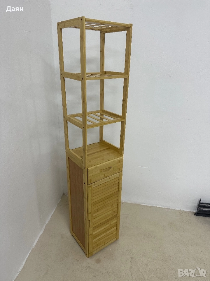 Висок бамбуков шкаф за баня Kleankin → Обява 52635600