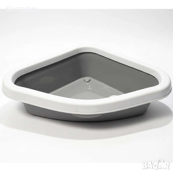 -Открита ъглова котешка тоалетна с борд