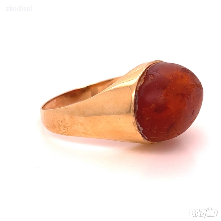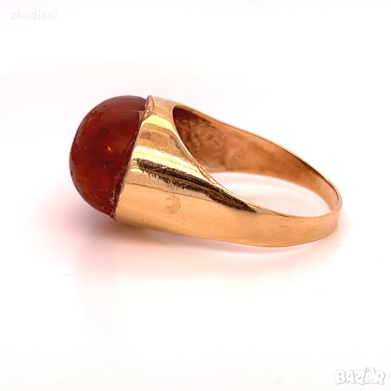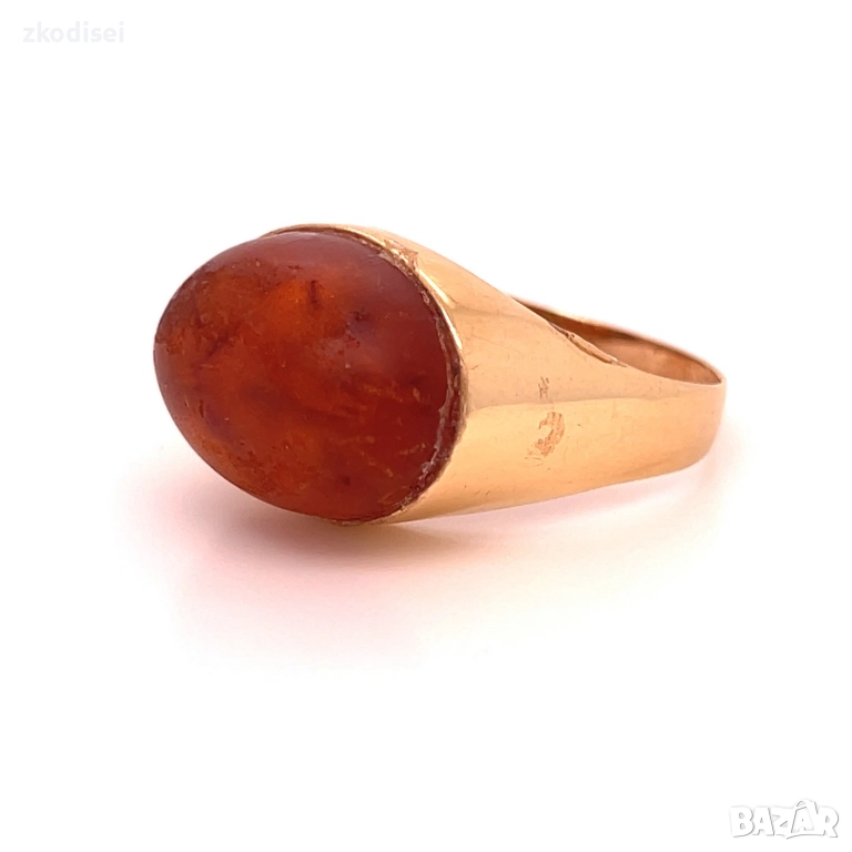 Златен мъжки пръстен с кехлибар 6,10гр. размер:66 14кр. проба:585 модел:5035-1 → Обява 52636171