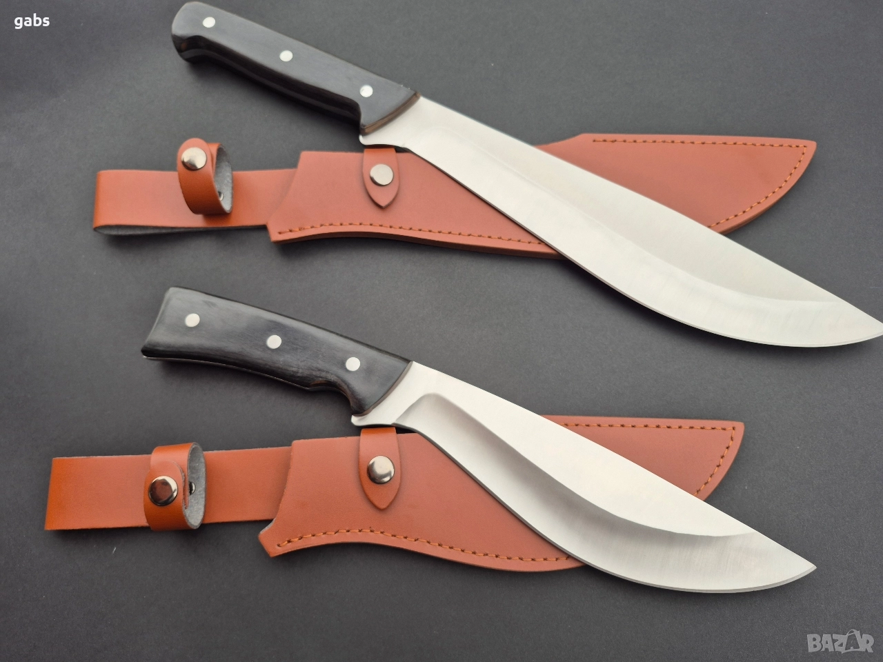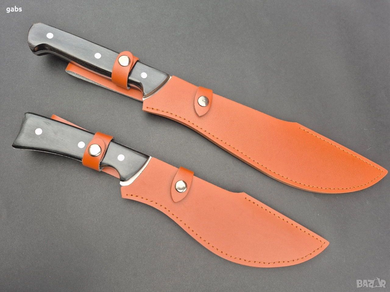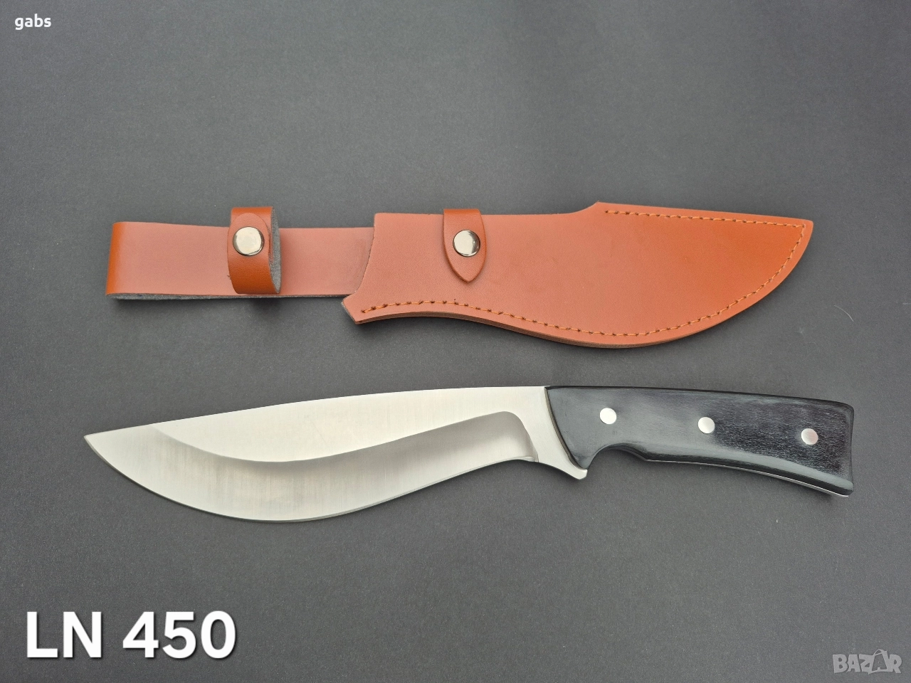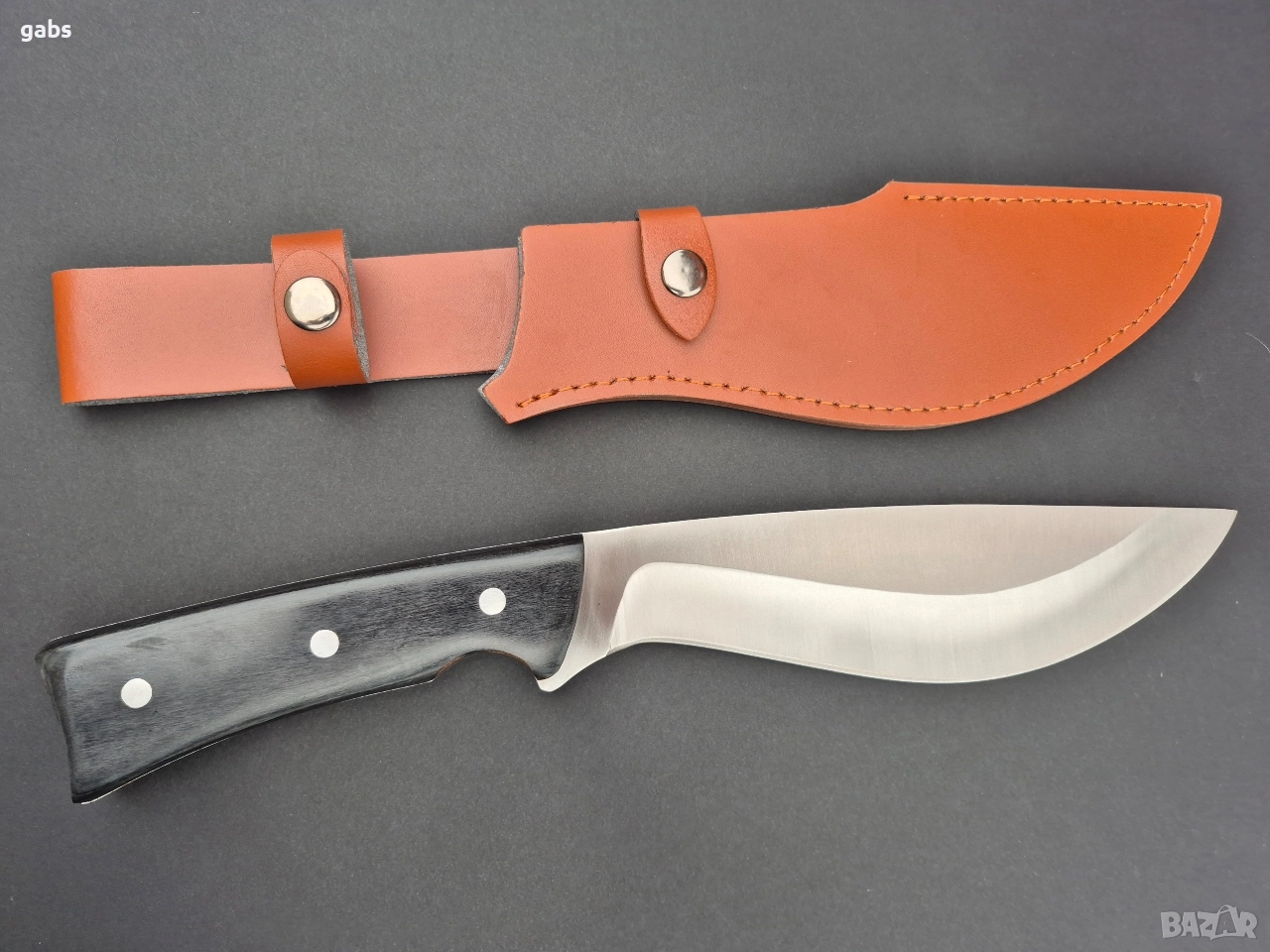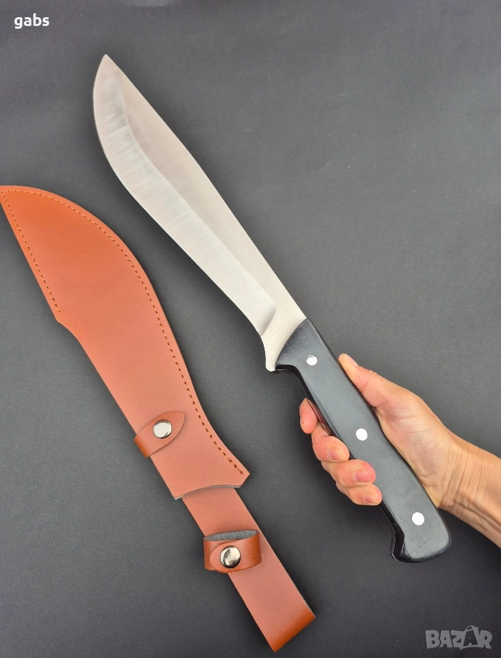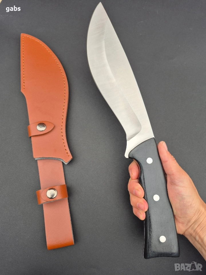 Уникален масивен ловен нож,фултанг с кожена кания,два модела