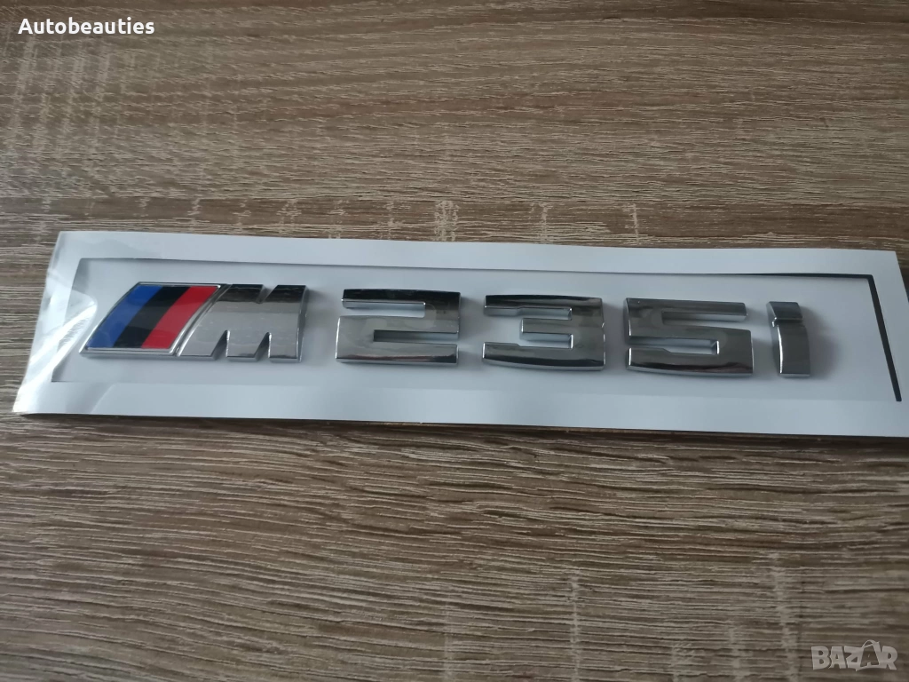 Нова емблема в сребрист гланц за модела на BMW M235i. Височината на буквите е 2 см.