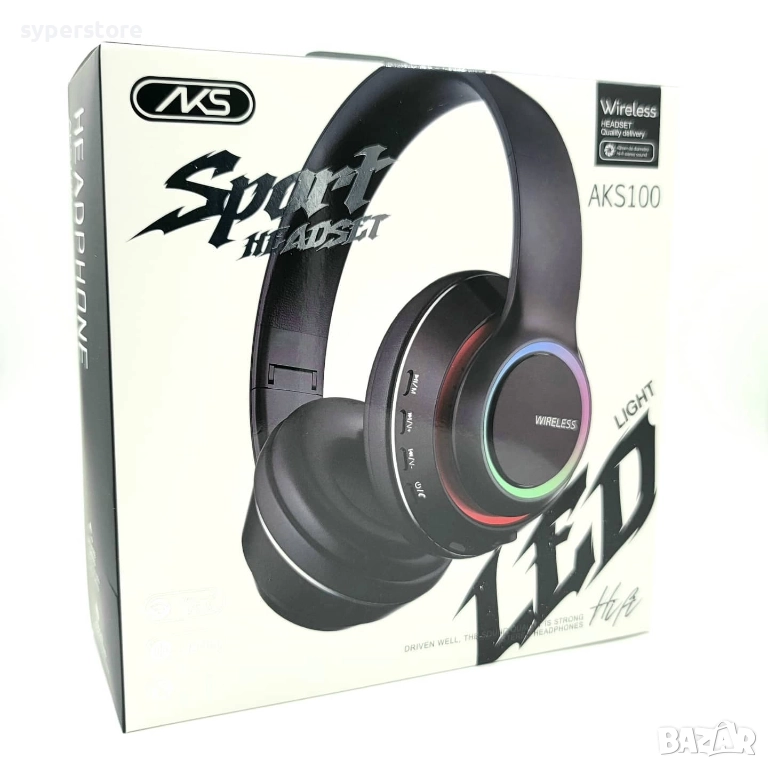 Слушалки Безжични Блутут Digital One SP01024 aks-100, RGB, черни, Bluetoot, MP3, голяма мида, Headphones