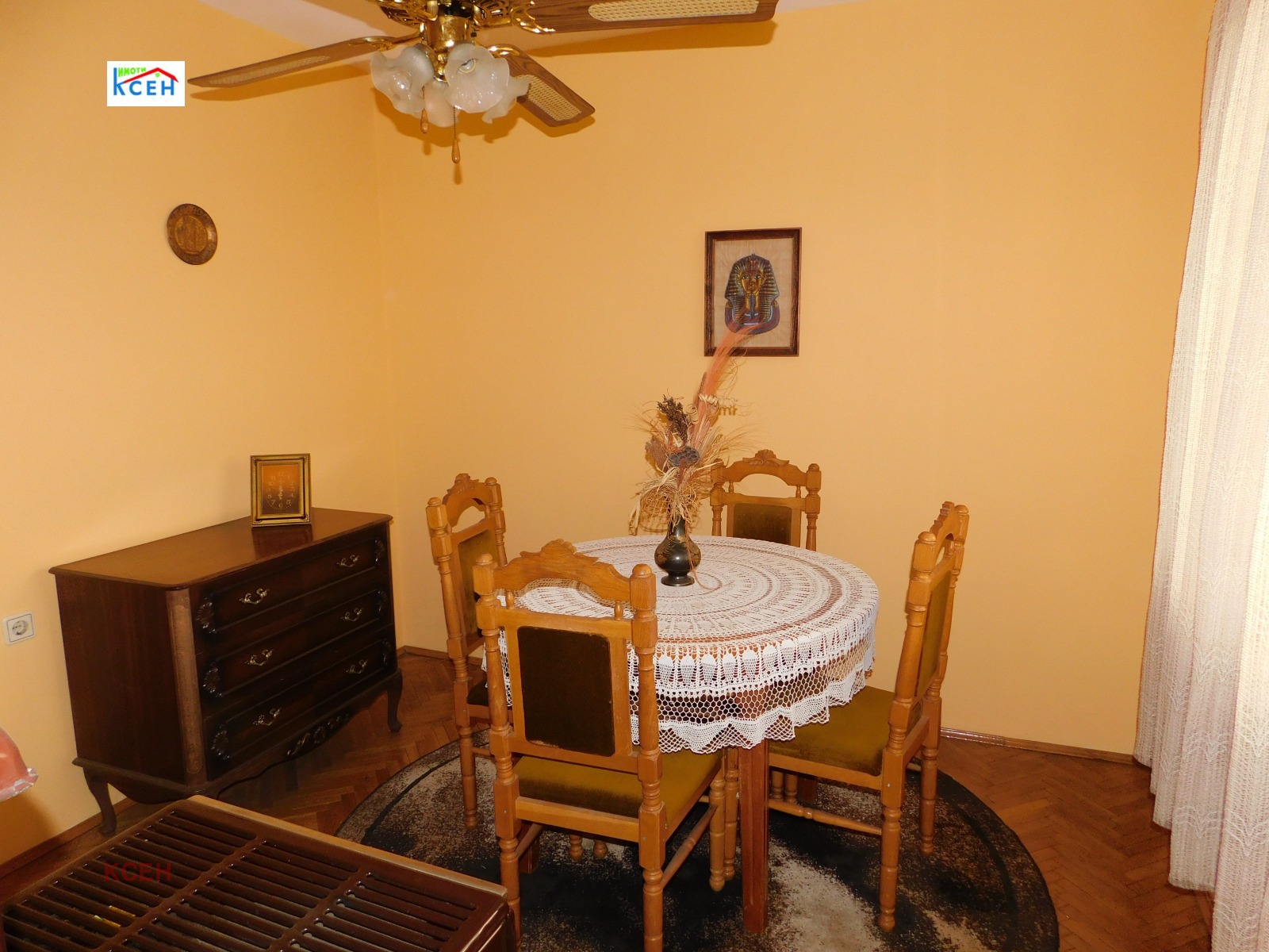 ИМОТИ КСЕН продава четиристаен апартамент в центъра на град Търговище. Жилището е с площ от 98 кв.м., разположено на четвърти жилищен етаж в тухлена сграда, построена през 1999г. Има следното разпределение: просторен коридор, трапезария с кухненски бокс, детска спалня, родителска спалня с излаз на тераса, хол с излаз на тераса, мокро помещение, тоалетна, баня. Апартаментът е обзаведен с масивни и качествени мебели. В коридора и хола стените са с японска мазилка, а стените на останалите помещения са с латекс. Подовата настилка в коридора е мрамор, в хола, двете спални и трапезарията е паркет в отлично състояние, а в кухнята теракот. Една от спалните е оборудвана с климатик. Жилището се продава с наличното обзавеждане и оборудване. Към имота има прилежащо избено помещение с площ от 12 кв.м. Има възможност за закупуване на гараж под блока на цена от 20 000 евро. Апартаментът се намира на тиха и спокойна улица в непосредствена близост до детски градини, училище, магазини, централния градски площад и пешеходната зона на града. Агенцията съдейства за отпускане на банков кредит при най-изгодни условия за клиента и изготвяне пазарна оценка на имота.