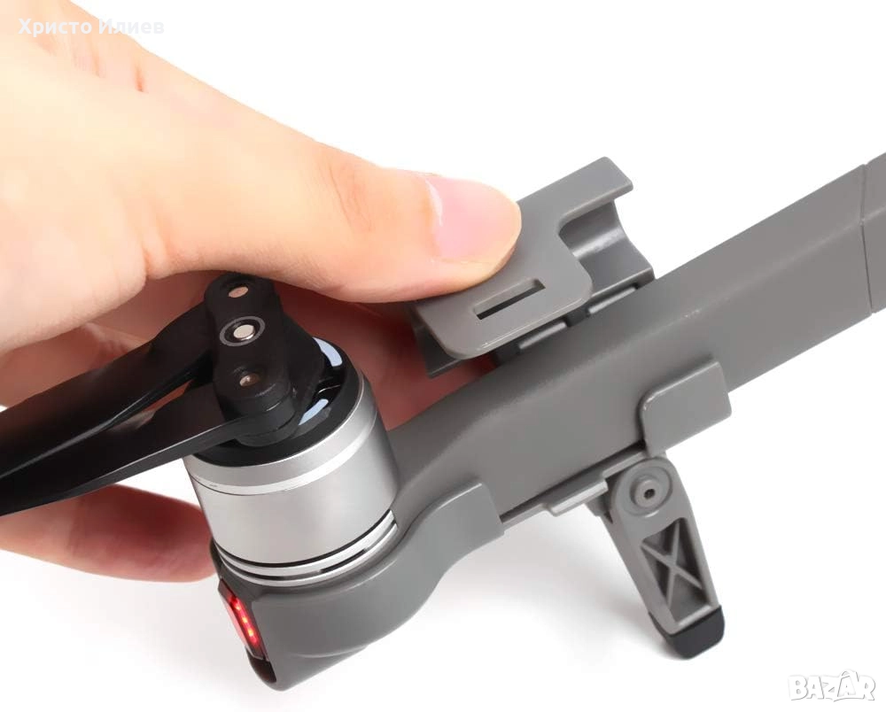 Не е необходимо да сваляте удължителите от дрона по време на транспортиране – те не пречат на механизма за затваряне на дроновете DJI Mavic 2 Pro или Mavic 2 Zoom.