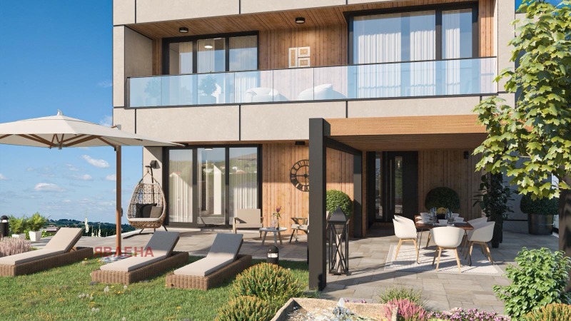 Къщата е ситуирана в поземлен имот с площ от 719 кв.м., има застроена площ от 165 кв.м. и РЗП от 657 кв.м. Имотът е на етап АКТ 14, като разрешение за ползване се очаква през АПРИЛ 2026г.