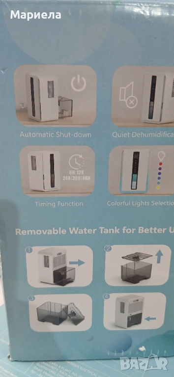 Преносимият електрически влагоабсорбатор е оборудван с функция за автоматично изключване, когато резервоарът за вода достигне максималния си капацитет, предотвратявайки евентуално преливане.