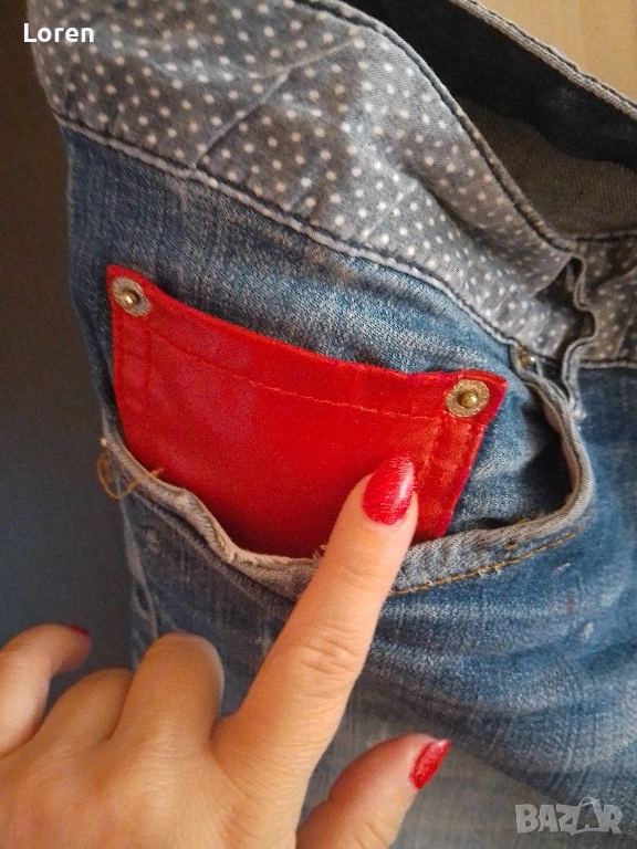 Имат забележка само по червено джобче,което е от кожа и има напукани чертички по него