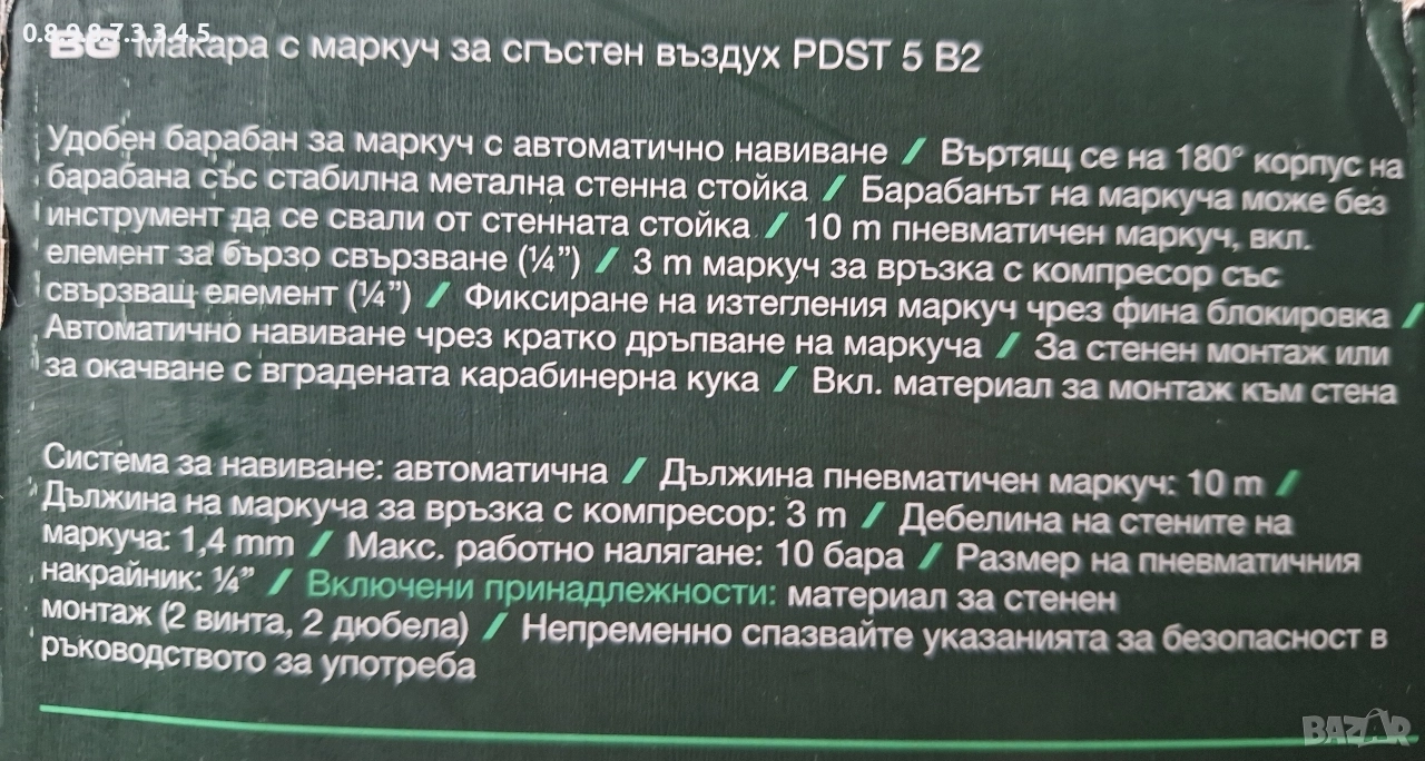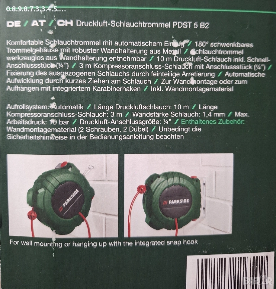 маркуч за въздух с автоматичен барабан на Парксайд parkside PDST → Обява 52637237