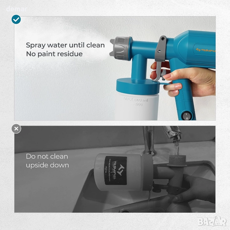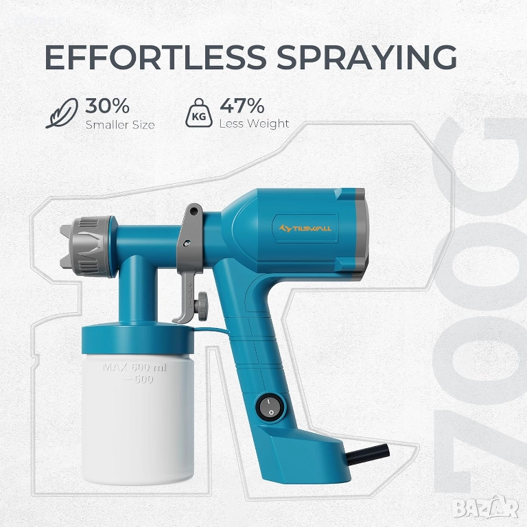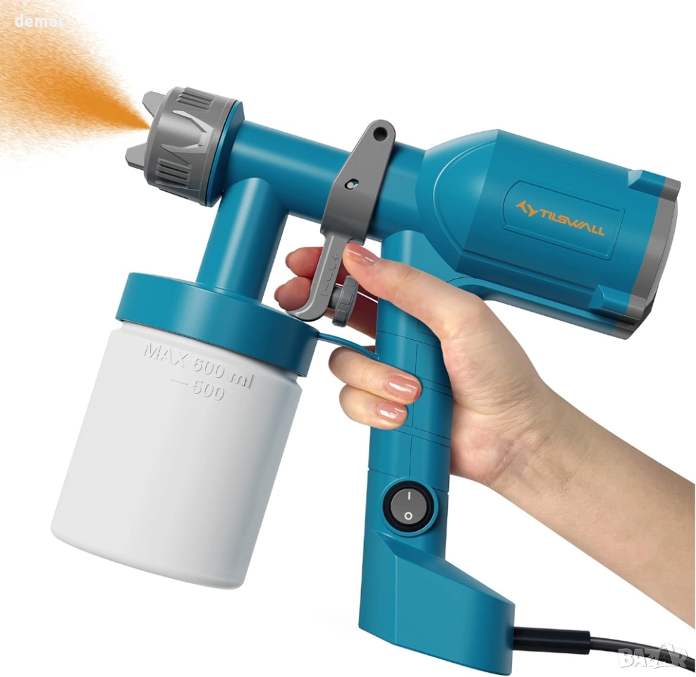 Пистолет за боя Tilswall, ултралек електрически, 600 мл подвижна чаша с 2 дюзи и 3 режима