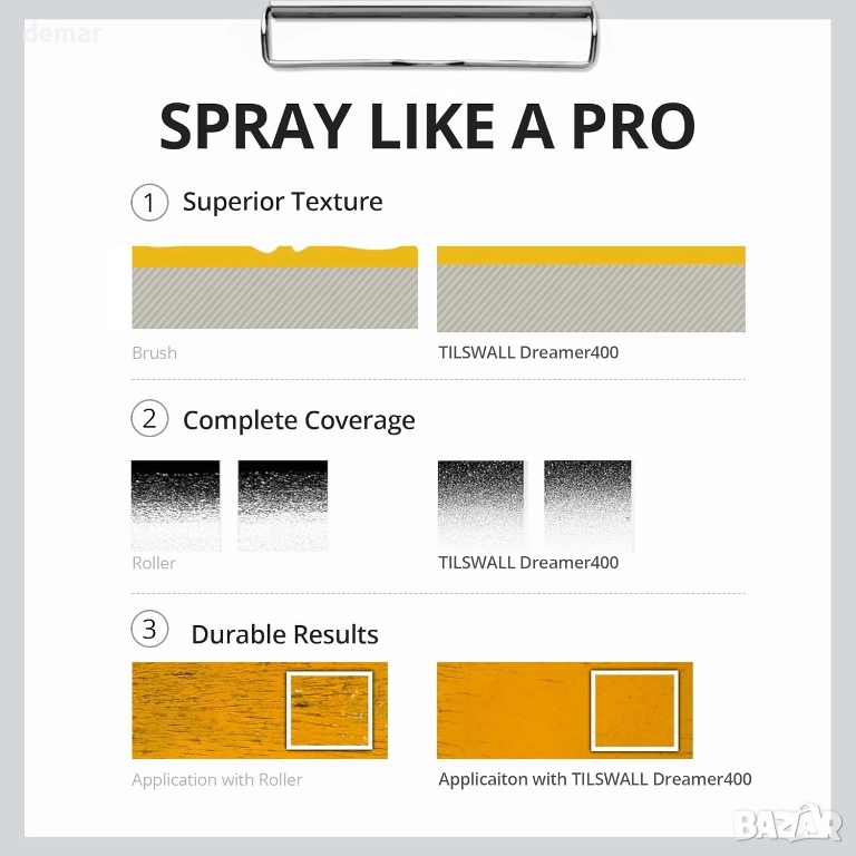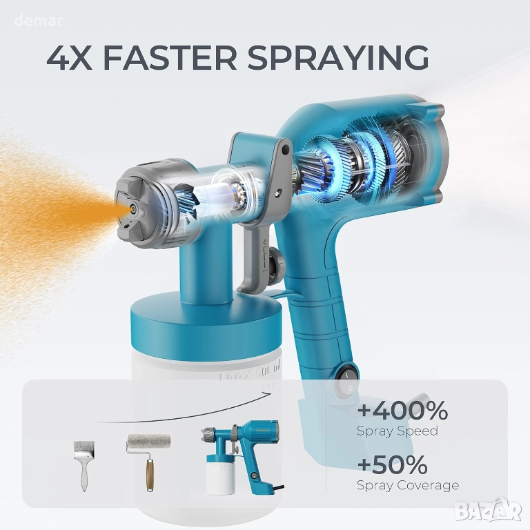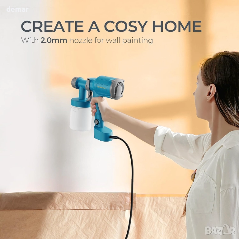 Този HVLP пистолет за боядисване се отличава с ултралека, ергономична конструкция за намаляване на умората, предлага лесно управление с натискане на спусъка, подходящо за начинаещи, и поддържа множество проекти със сменяеми дюзи и три режима на пръскане. Той осигурява гладко и равномерно покритие върху различни повърхности, работи добре както за детайлни, така и за големи задачи и се представя най-добре, когато боята е правилно разредена. Затягането на спусъка преди употреба и почистването след всяка сесия спомагат за поддържане на постоянни и надеждни резултати.