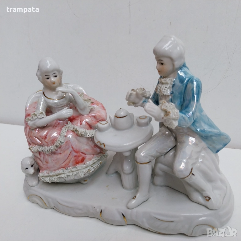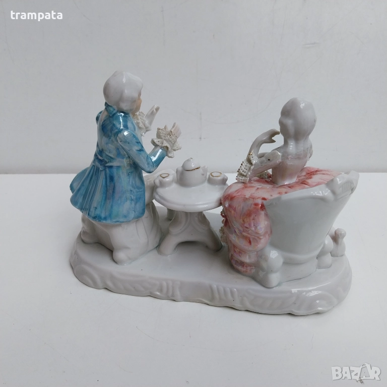 НАЙ ДОБРАТА ОФЕРТА Стара немска Порцеланова фигура , мъж и жена на чай