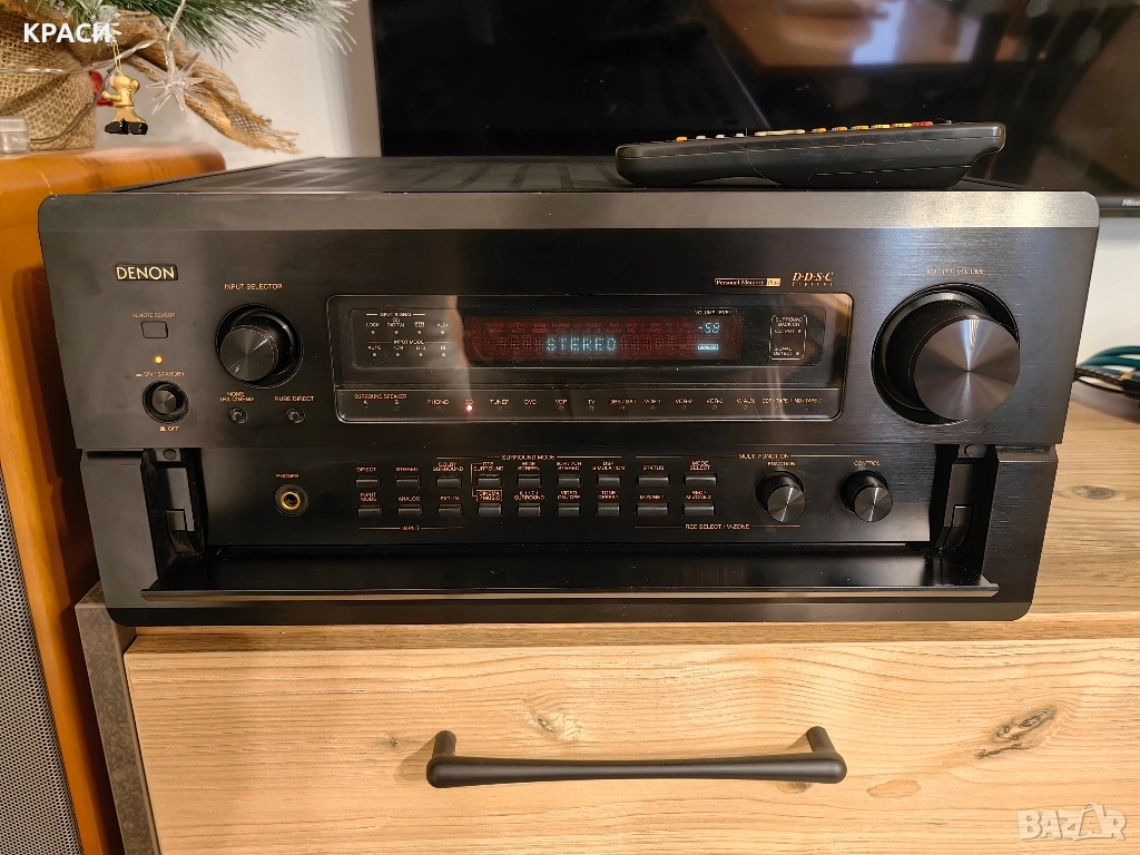 Най-високия клас на Denon avc- A1 se 170 w на канал, 28,5 кг.Много плътен и детайлен звук .Работи и като stereo усилвател в режим pure direct. Перфектно техническо състояние.Дистанционното e на Denon ,но не е оригиналното.
