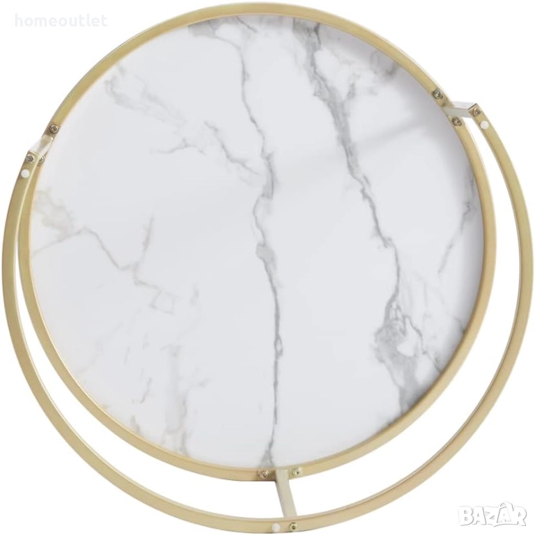 Комбинацията от златиста стоманена рамка и кръгъл плот с мраморна шарка е изключително ефектна и се вписва лесно в различни интериорни стилове.