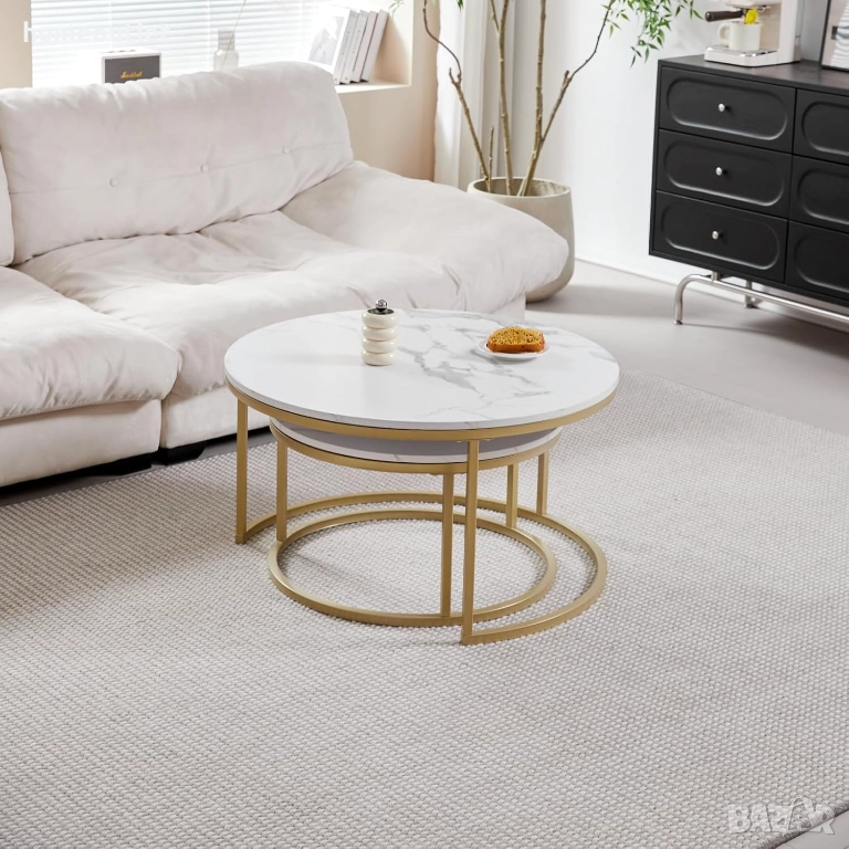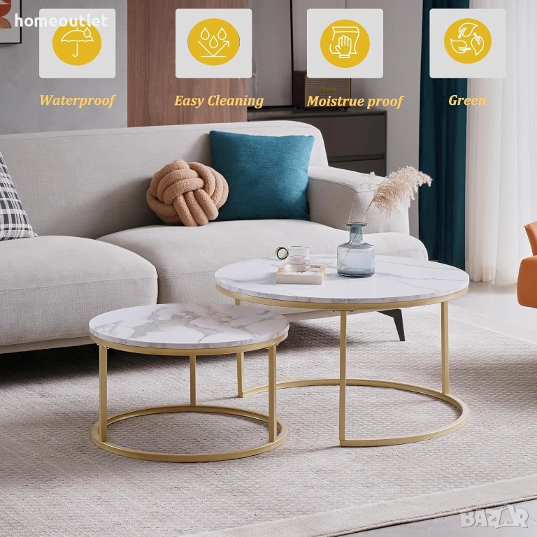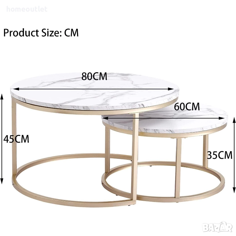 Изработени с плотове от масивна MDF плоскост, имитираща мрамор и златиста метална основа, които осигуряват изящна минималистична визия и стабилност.