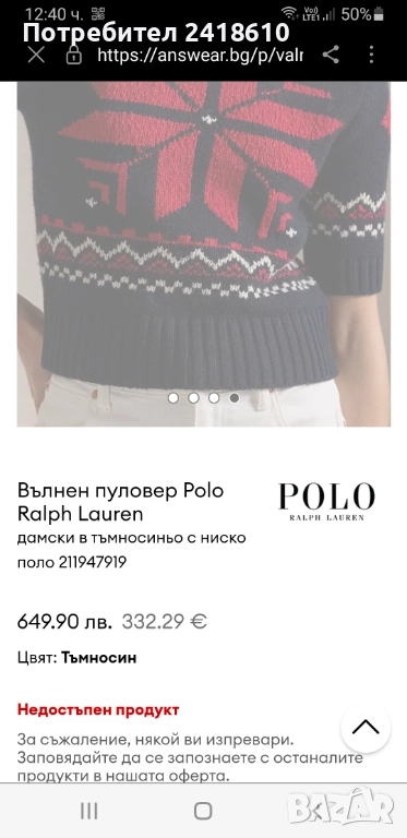 POLO Ralph Lauren Wool Knit Womens Size L /XL НОВО! ОРИГИНАЛ! Дамски Пуловер !