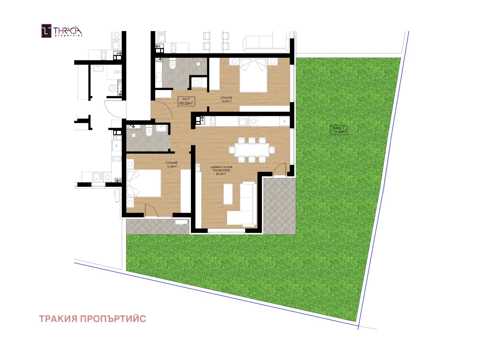 - просторна дневна с трапезария и кухненски бокс