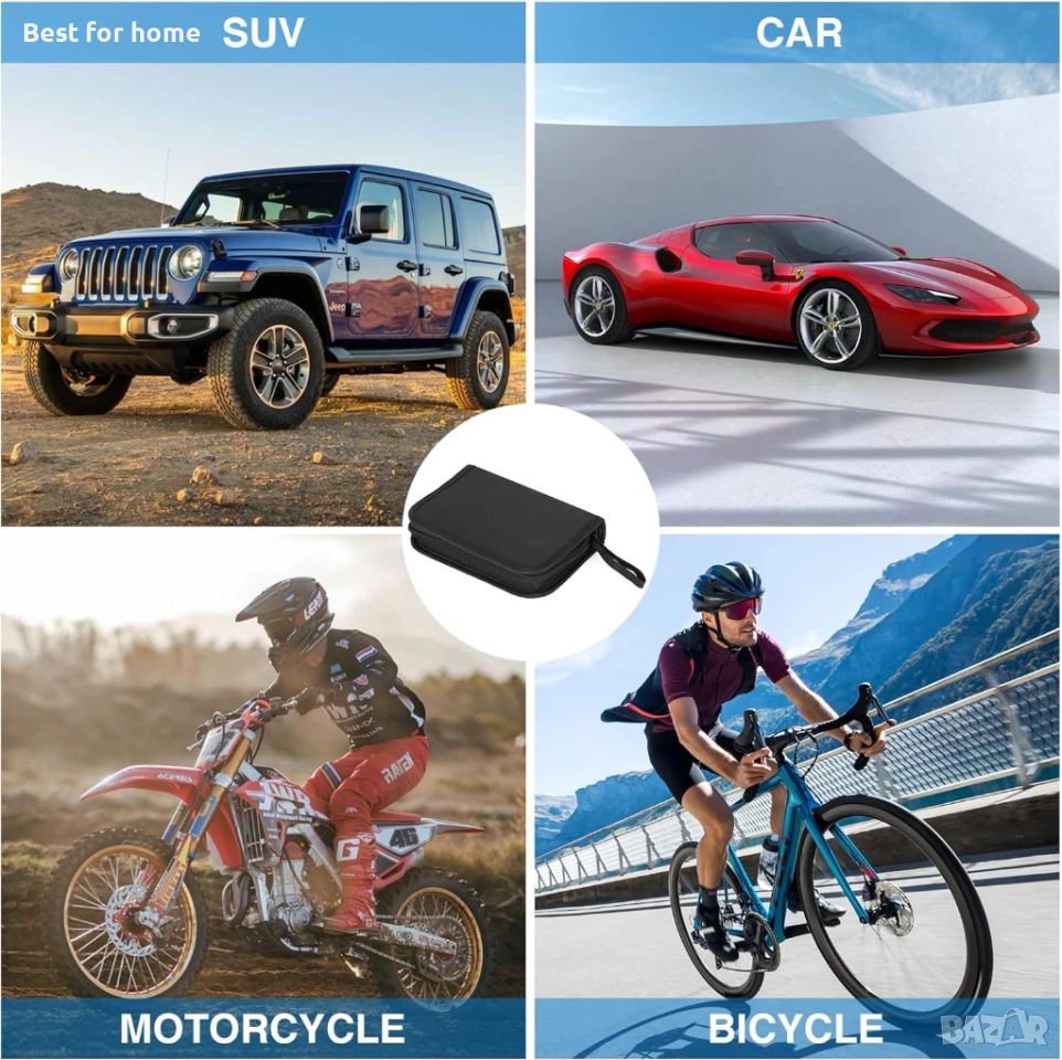 【Пълна гама от ремонтни части】 Съдържа разнообразие от аксесоари за ремонт на гуми, включително моливни манометри, за измерване и поддържане на нивото на налягането в гумите след завършване на ремонта на гумите, за да се гарантира безопасността на шофиране.