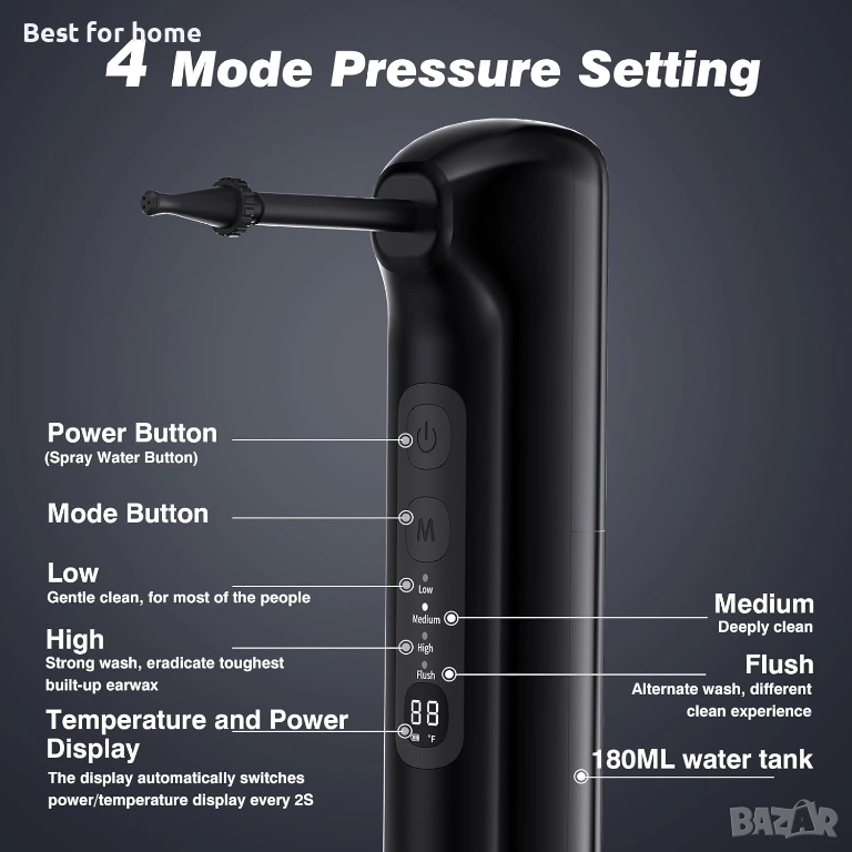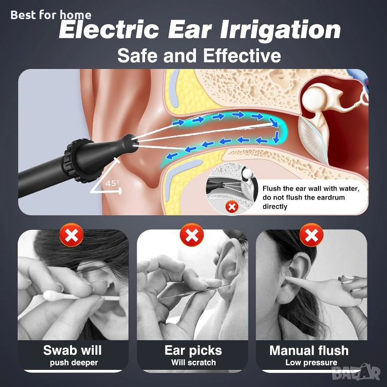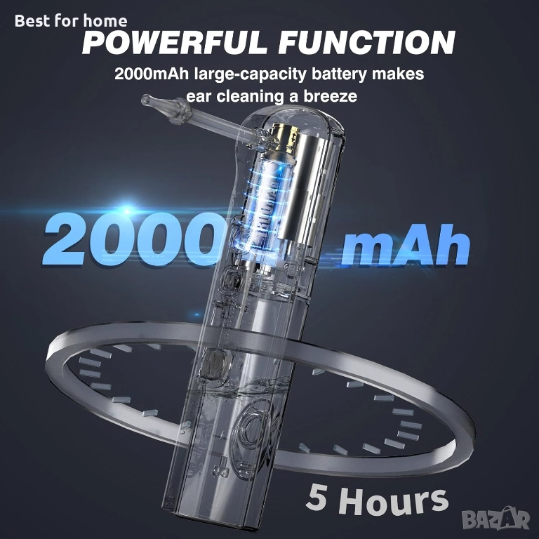 Комплект за премахване на ушна кал, HassoKon Акумулаторен електрически инструмент за премахване на ушна кал, за ефективно почистване на уши, премахване на ушна кал с 4 режима на почистване, 6 накрайника за еднократна употреба, комплект за почистване на уши за домашна употреба.