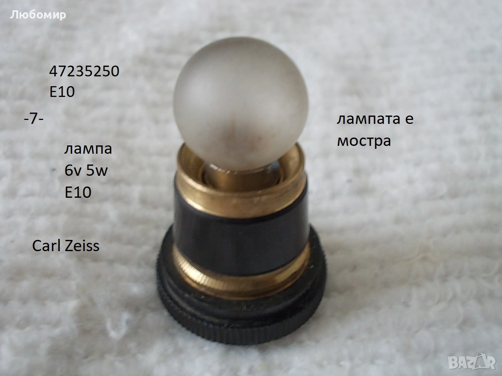 10. Фасунг лампа 6v 15w ситна резба Carl Zeiss - неизползвано - 14 лв.