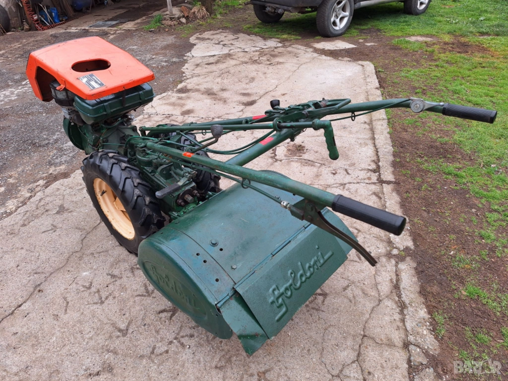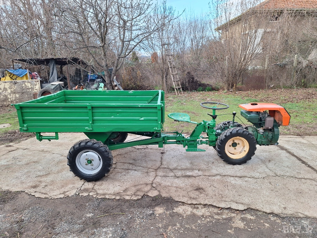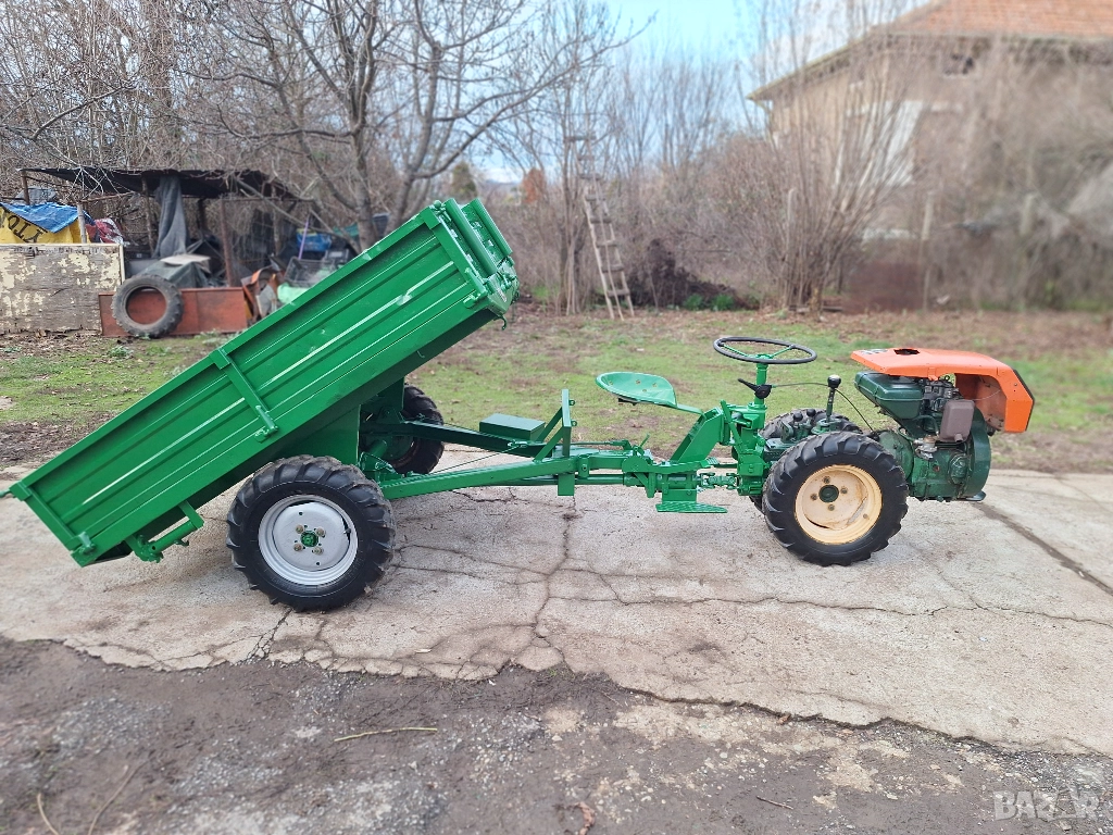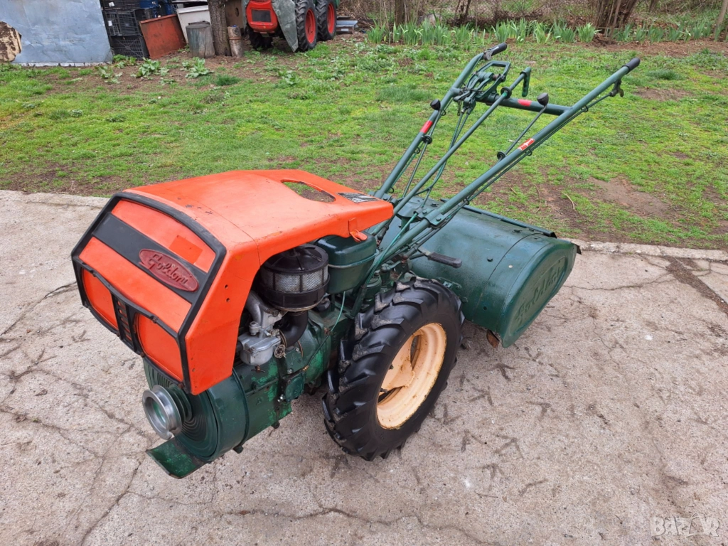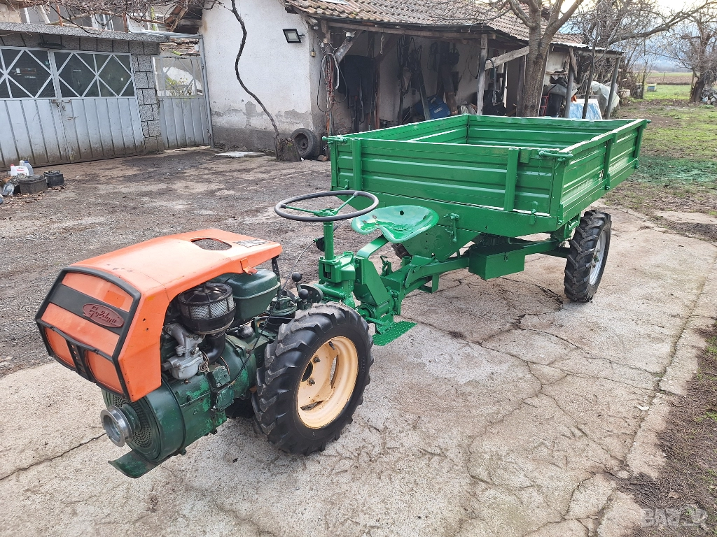 Напълно нов внос от Италия. Мотоблок 4х4 с предно и задно предаване, със самосвално диференциално ремарке, марка Goldoni, модел Special, двигател бензинов четиритактов Lombardini 14 к. с. , може да се прикача на мястото на ремаркето инвентар-фреза, плуг и др. 4 предни скорости (бързи и бавни), 1 задна +3 скорости на силоотводния вал, блокаж и отблокиране на диференциала, ръчни и крачни предни и задни спирачки. Работи като часовник. Обща дължина 2.5м. , дължина леген ремарке 170см. , широчина леген ремарке 1,30м. Много проходим, включително и по планински терени. Марката няма нужда от реклама. Без излишна електроника. Пали се много леко с въже. Не е ползвано в България. Цената е 2100 евро и е без коментар.В комплект с фреза и дръжки 2500евро