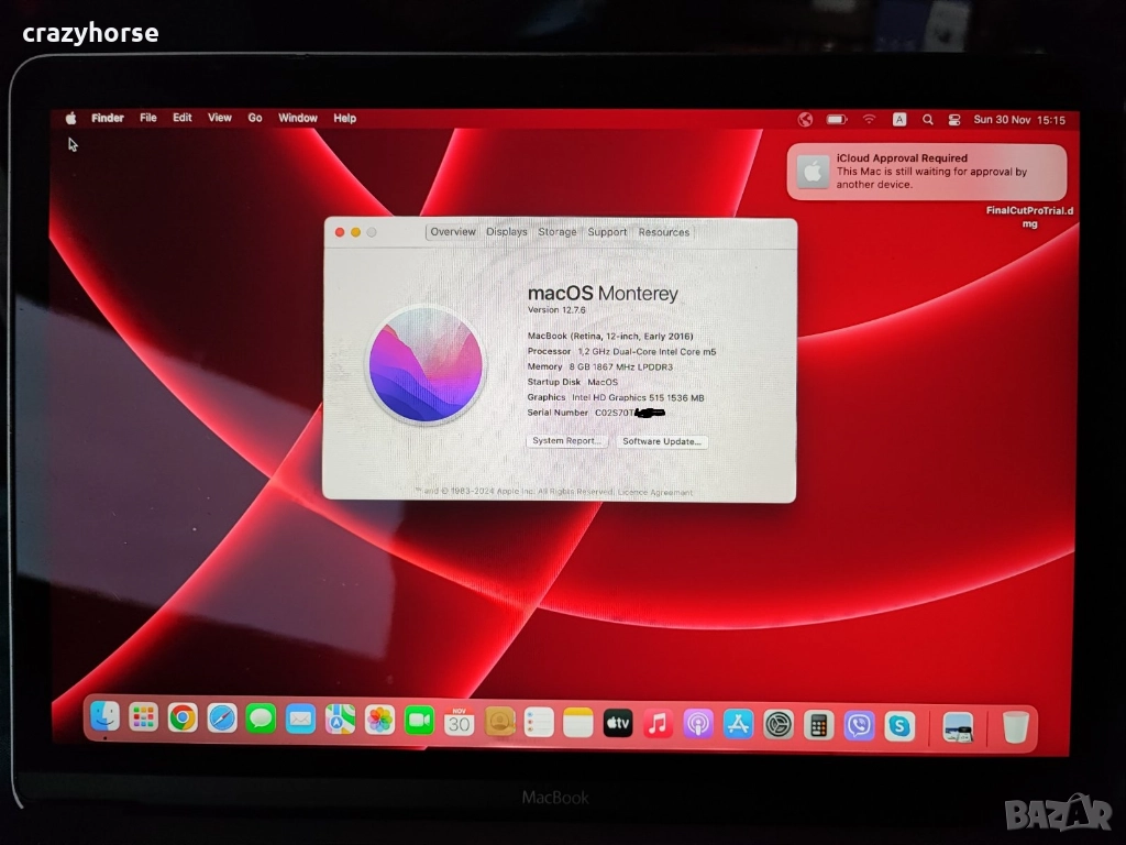 Лаптоп MacBook (A1534) Retina, 12-inch, Early 2016 → Обява 52638864