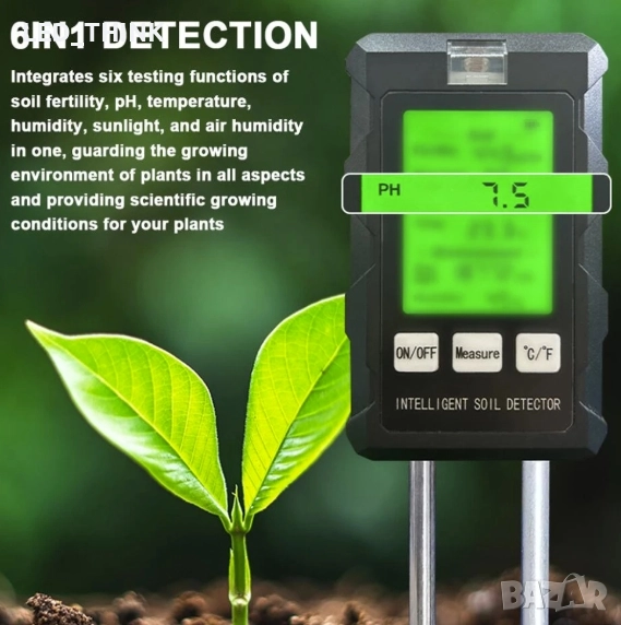 Измервател 6 в 1 за почва влажност киселинност PH температура
