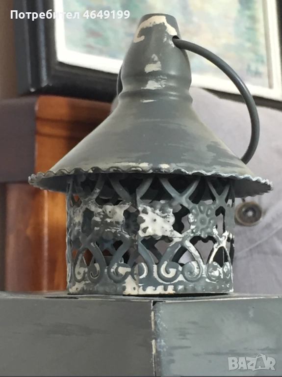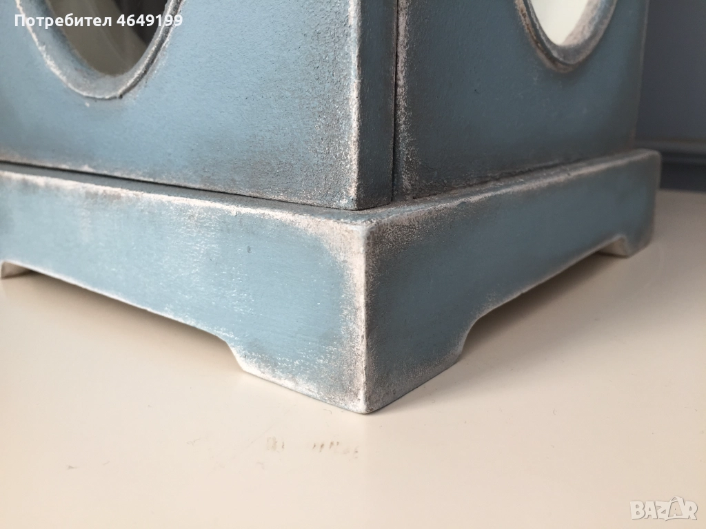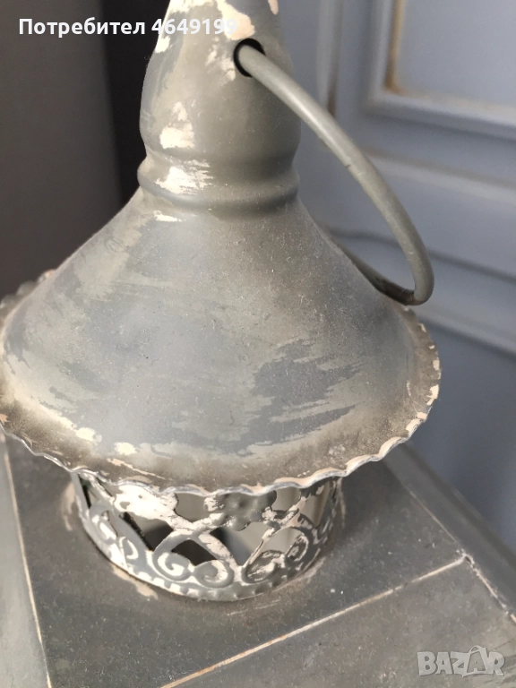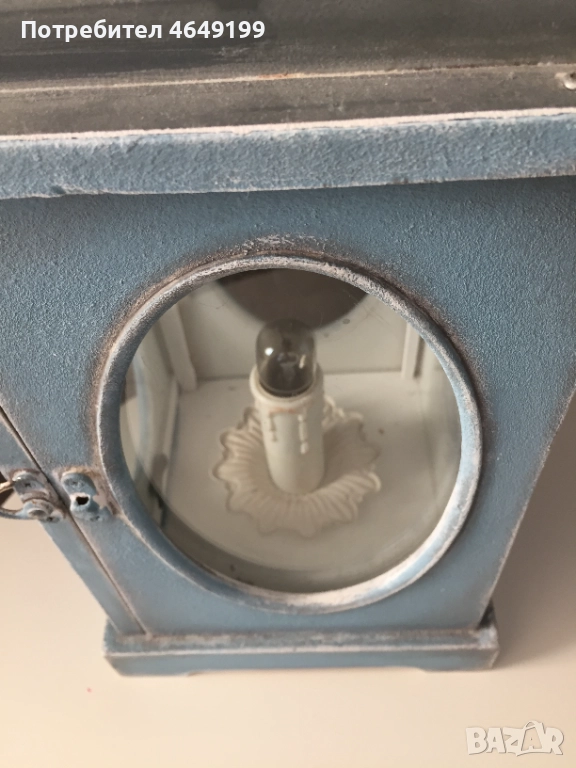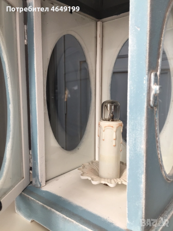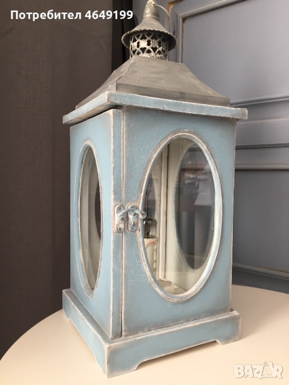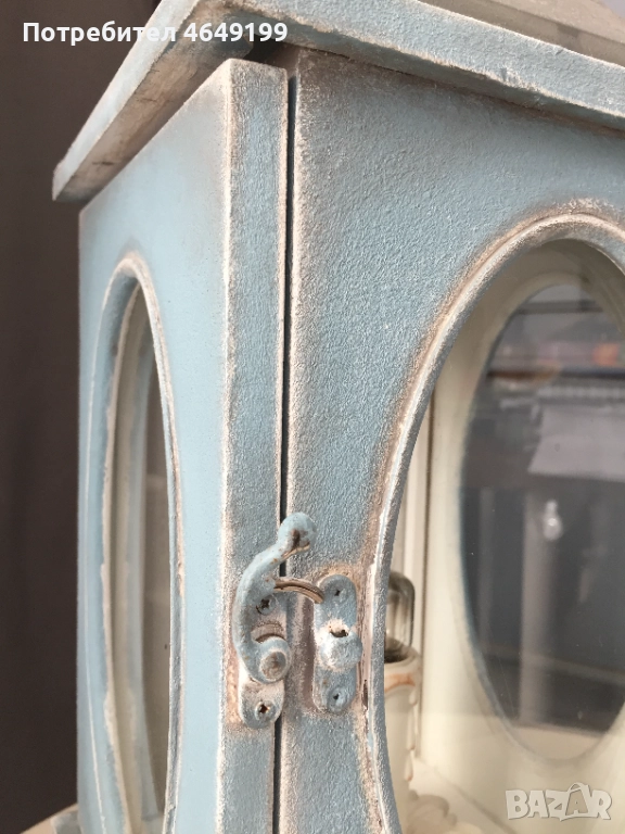 Представяме ви нощна лампа, тип фенер, във винтидж стил, боядисана с висококачествени био бои Nordic Chic. Синият цвят добавя спокойствие и хармония във всяко пространство и същевременно служи като акцент в интериора.
