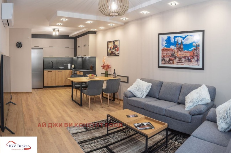 Новопостроена сграда с контрол на достъпа и охрана. Напълно обзаведено и оборудвано с висок клас електроуреди и мебели. Южно изложение. Възможност за наемане на подземен гараж. Свободен за наемане.