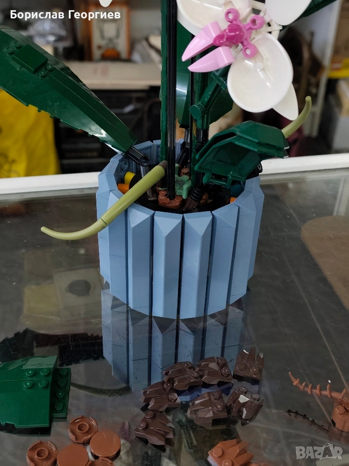 Цената е за трите сета.И трите са без кутии и книжки. 1. Lego Bonsai tree 10281 липсват 49 броя части,зелените листа и части.Може да се построи само с белите листа и розовите жаби.Лиосващите части са предимно от най малките които се слагат в саксията 2. Lego flower Bouquet 10280 липсват 11 броя части 3. Lego Orchid 10311 липсват 13 броя части. Доставка за страната с Еконт с преглед и тест.