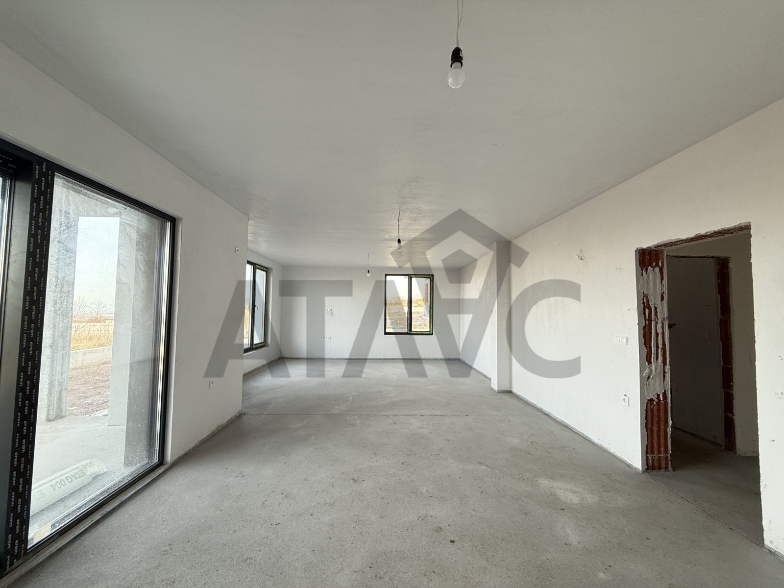Разпределението включва просторна дневна с кухня над 46 кв.м., три спални - едната със собствена баня и малка гардеробна, още една баня с тоалетна, голямо перално помещение с възможност за трета баня, сервизно помещение с водопречиствателна система, широк коридор и веранда от 15 кв.м. с гледка към града. Отоплението е предвидено за климатици, но лесно може да се изгради подово с термопомпа.
