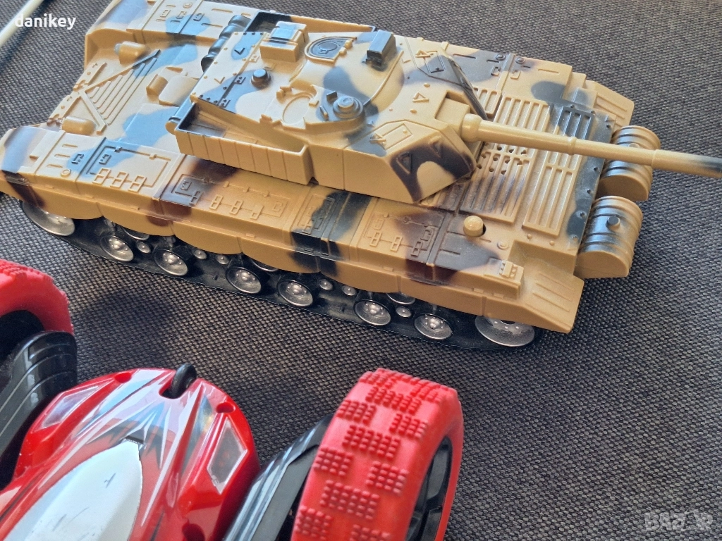 3 бр. радио управляеми играчки, багер, танк, кола → Обява 52639699
