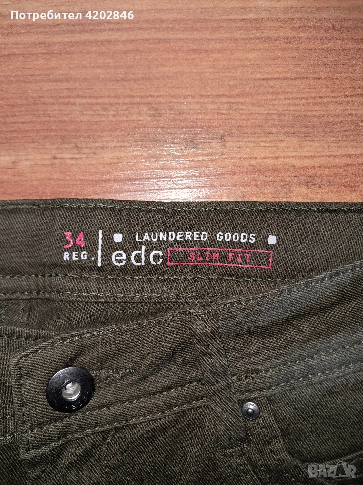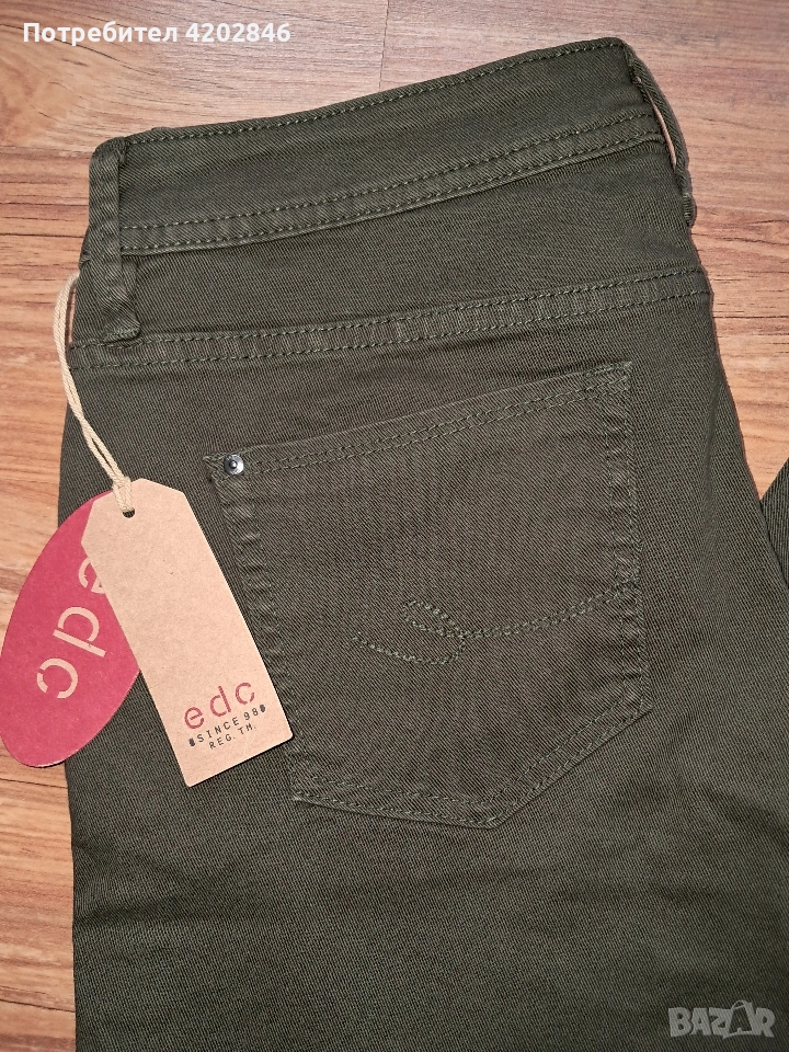 edc Нови оригинални дамски дънки в цвят Olive. Slim Fit. Размер 34. Талия 38-39 см. едностранно. 98% памук и 2% еластан. Гарантирам за оригиналност и качество!