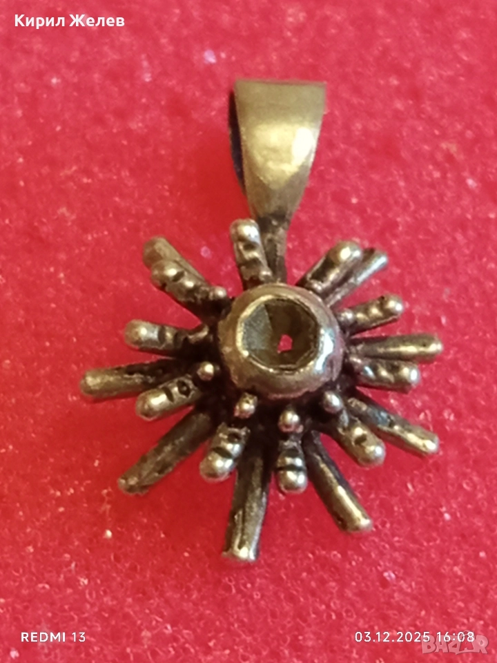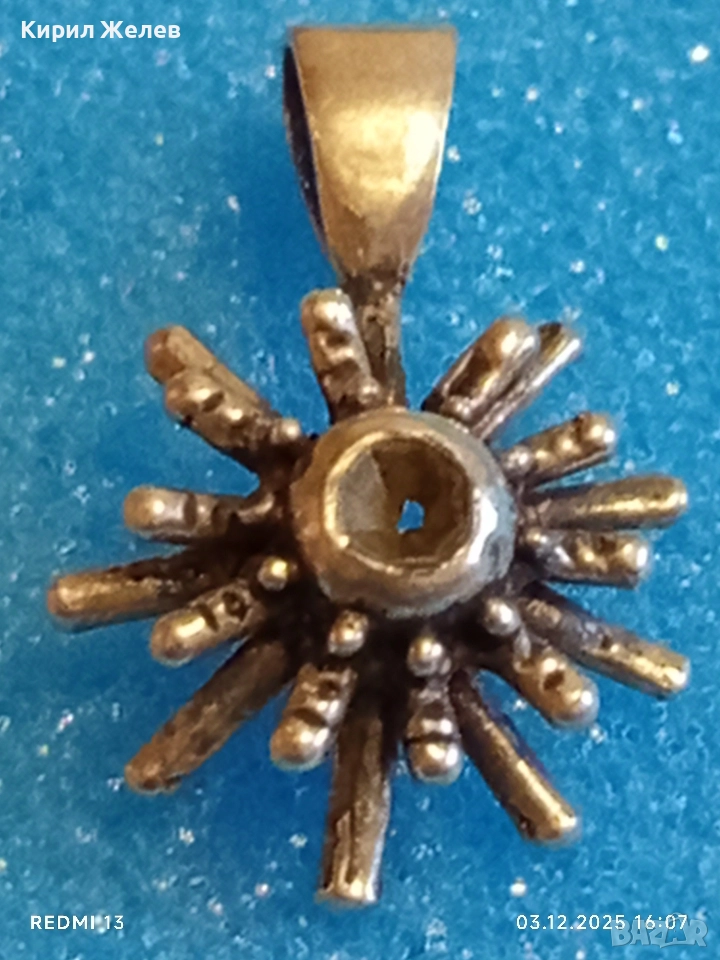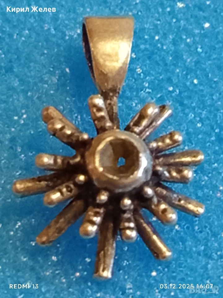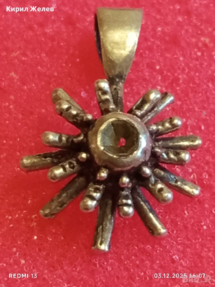 Красиво сребърно фешън арт медальонче във формата на слънце 50540