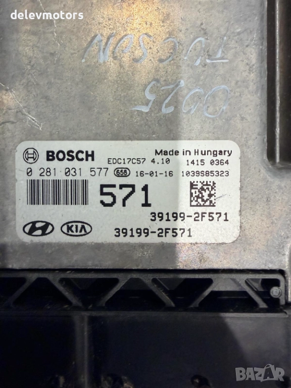 0281031577, EDC17C57 ECU компютър за двигател Hyundai Tucson 2.0 CRDI, 185 ph., 4x4, automatic, engine D4HA, 50 000 km, 2016, euro 6B, Хюндай Туксон 2.0 ЦРДИ, 185 кс., 4х4, автоматик, двигател D4HA, 50000км, 2016 г., евро 6Б в автоморга Delev Motors, между с. Каменар и с. Куманово гр. Варна.