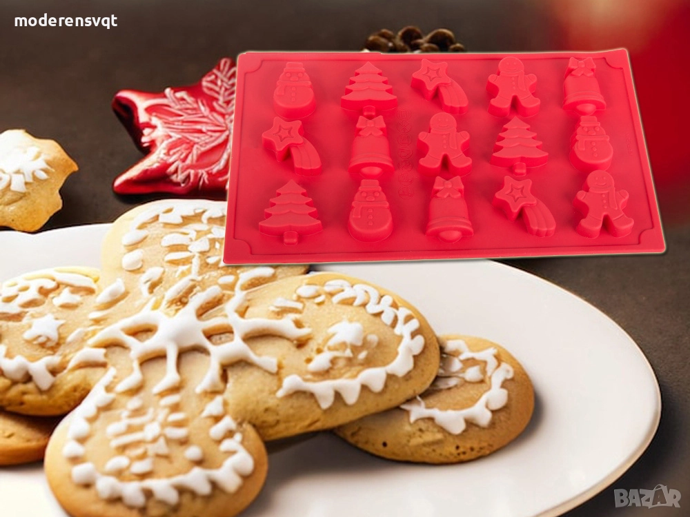 Силиконова форма за коледни сладки 15 броя