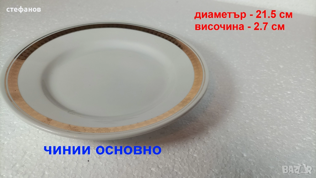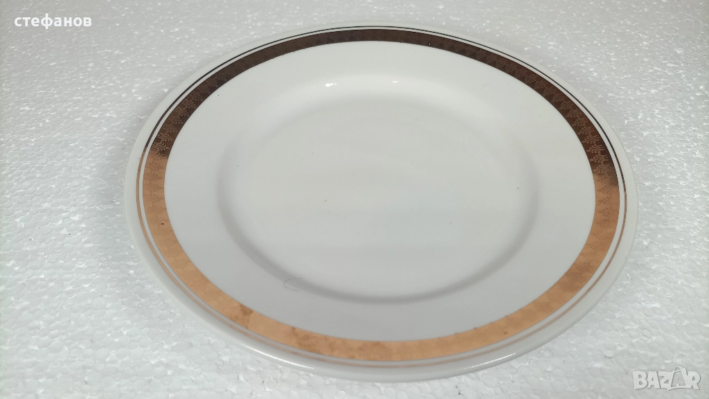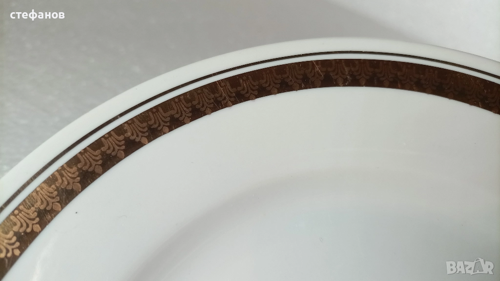 Български порцеланови чинии, Разград, дебел и тънък златен кант → Обява 52640965