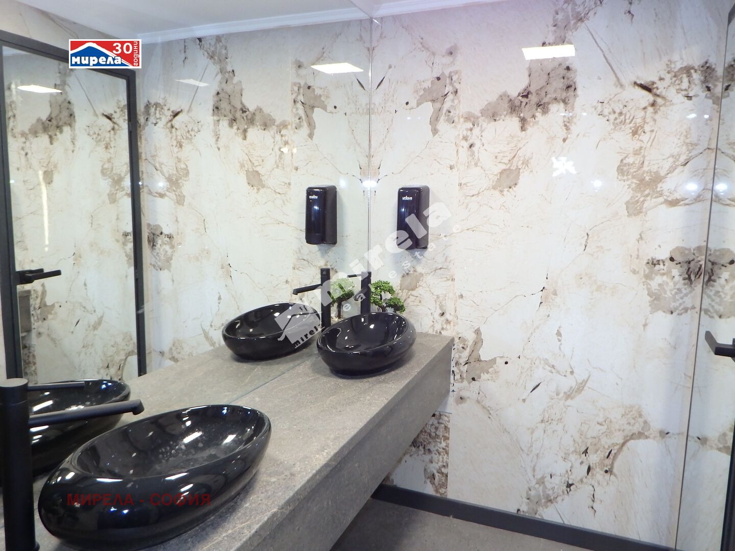 * ниво светъл сутерен (тип английски двор)- open space пространство, три санитарни възела (два за клиенти и един служебен), склад, помещение, което може да бъде кухня - общо за нивото около 150 кв.м.