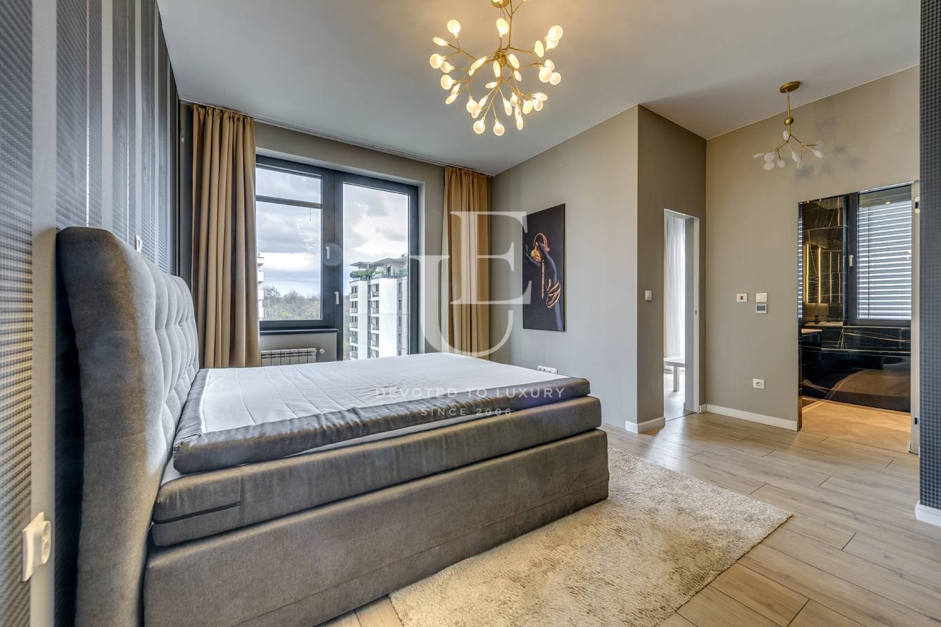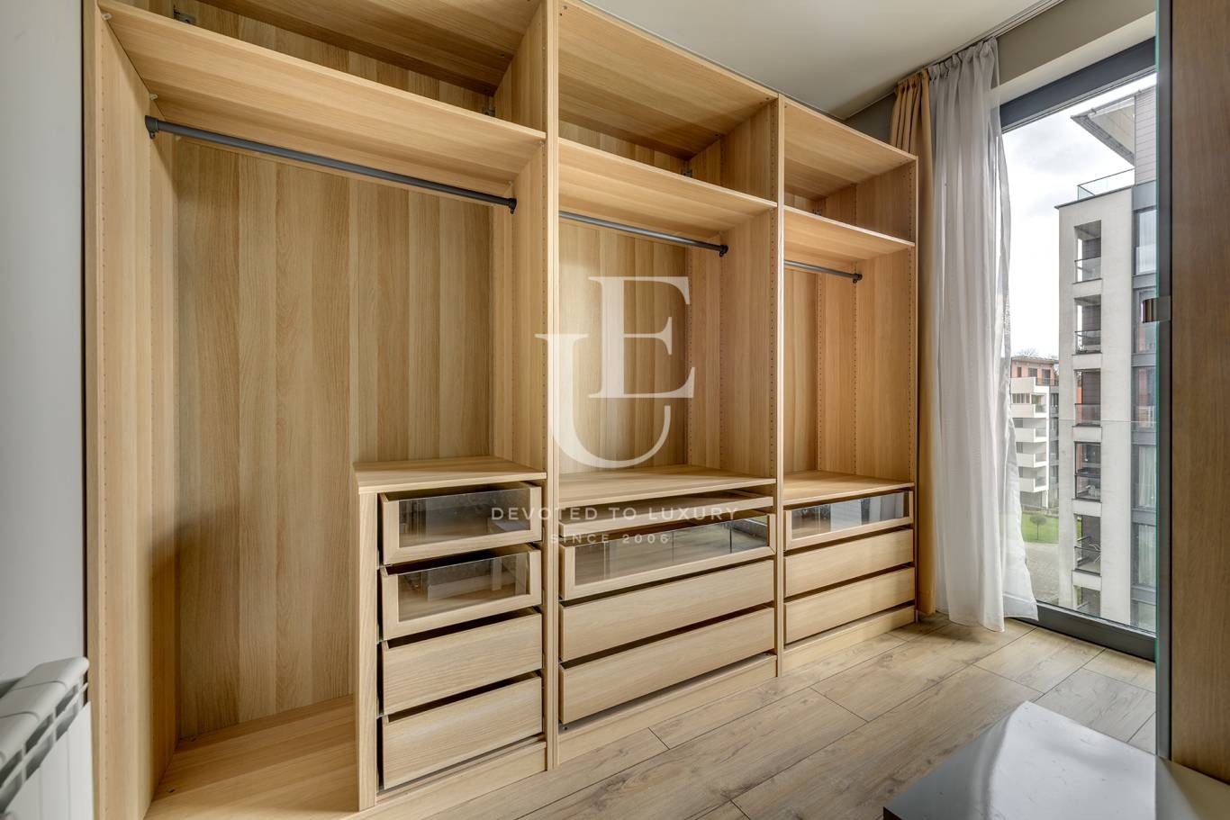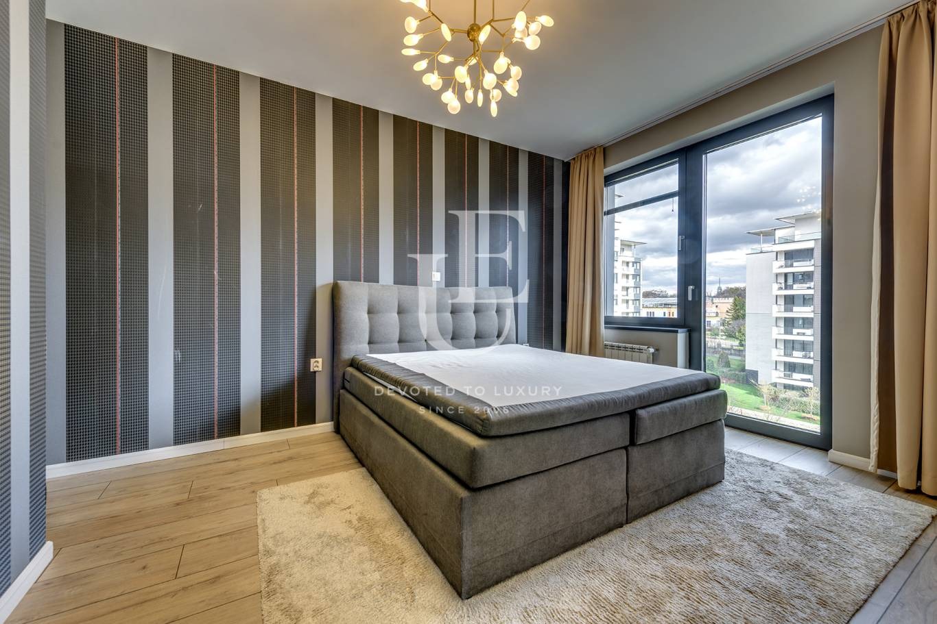 Unique Estates има удоволствието да Ви предложи един просторен и напълно обзаведен апартамент за продажба. Апартаментът се намира на четвърти етаж в луксозна сграда, част от затворен комплекс с денонощна охрана, просторен частен парк, както и много голям подземен паркинг за живущите в комплекса.