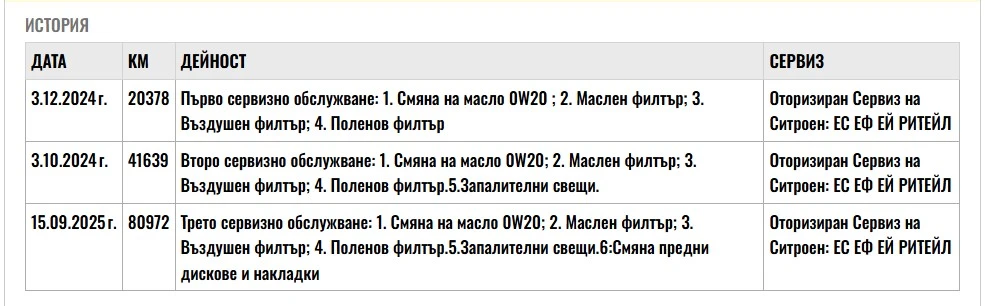 OUTLETCARS Ви представя върнат от лизинг автомобил Citroen C3 1. 2 PureTech 83hp C-SERIES с първа регистрация 08. 2023 ********************************* -Закуп ен от Официалното представителство на марката за страната има пълна сервизна история, вписана в сервизната книжка на автомобила, която може да бъде проверена. Обслужван съгласно сервизния план на производителя в оторизираните сервизи. Безупречна работа на двигател, скорости и ходова част. Цялостен доклад за техническото състояние на нашият сайт. ******************************** -C-SER IES: СТАНДАРТНО НИВО: CITROË N Connect Radio DAB на 7'' сензорен екран, USB извод, Bluetooth, Mirror Screen, Бордно табло C-Series, Автоматичен климатик + Поленов филтър и филтър с активен въглен, Електрически управляеми и отопляеми огледала, Предни ел. стъкла с постепенно задвижване и функция против прищипване, Помощ при потегляне под наклон, Пакет " Сигурност 1" (Предупреждение при неволно напускане на лентата, разпознаване на знаците за ограничение на скоростта, сигнализация при свалени задни колани), Coffee Brake Alert, LED къси и дневни светлини, Регулатор и ограничител на скоростта, Фарове за мъгла, Пакет " Видимост" (Автоматично включване на фаровете, автоматични предни чистачки), Пакет " Color Land of Tuscany" (Лайстна на фаровете за мъгла в BRONZE, странични протектори Airbump с лайстна в цвят BRONZE), Стикер на покрива Land of Tuscany, Затъмнени задни стъкла, Централно заключване, Електроусилвател на волана с променливо усилване, Система за следене на налаягането в гумите, Задна седалка с три места, 16" тасове " 3D Steel&Style" ******************************* Платена Застраховка Гражданска Отговорност Валиден технически преглед до: 15. 08. 2026 Регистриран и платен данък. Съдействие с нотариус. 2бр. Оригинални ключа! За огледи и информация телефон: Работно време: Понеделник - Петък 9: 00h - 18: 00h.