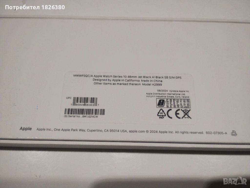 Смарт часовник Apple Watch series 10 в цвят Jet Black Aluminium case 46mm. Устройството е ново