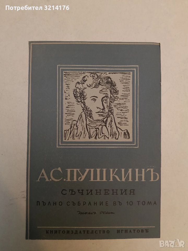 Съчинения. Пълно събрание въ десетъ тома. Томъ 1-10 - Александър С. Пушкин (1942, Луксозна изработка, изд. Игнатовъ, Общо стр. 4011) 311лв. т.к.