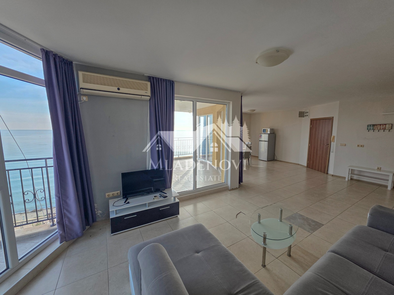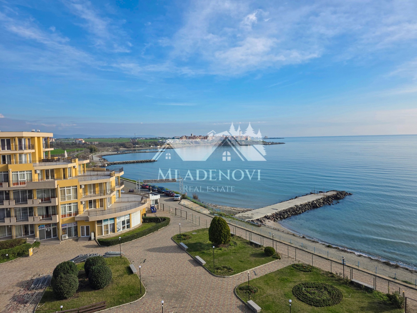 Предлагаме за продажба просторен тристаен апартамент с фронтална морска гледка от всяка стая, в затворен комплекс в град Ахелой. Този изключителен имот предлага уют и комфорт в един от най-желаните комплекси на Черноморието, със съвременни удобства за пълноценна почивка. Комплексът разполага с два външни басейна, ресторант, воден бар, фитнес зала, козметичен салон със стая за масаж, рецепция, денонощна охрана и магазини. В допълнение, има изградена опесъчена плажна тераса, на която гостите на комплекса могат да се насладят на безплатни чадъри и шезлонги. Апартаментът е разположен на 5-ти, последен жилищен етаж с асансьор и се състои от просторна всекидневна с кухненски кът и тераса, от която се открива невероятна морска гледка, две бани с тоалетни, две спални и коридор. Жилището е в добро състояние, готово за нанасяне, и предлага изключителна светлина и топлина. Комплексът е подходящ както за целогодишно ползване, така и за отдаване под наем. Таксата за поддръжка е 10,50 евро/кв.м с включено ДДС. Агенцията предлага пълно съдействие за финансиране на покупката чрез ипотечен кредит и безплатно юридическо обслужване през целия процес на сделката.